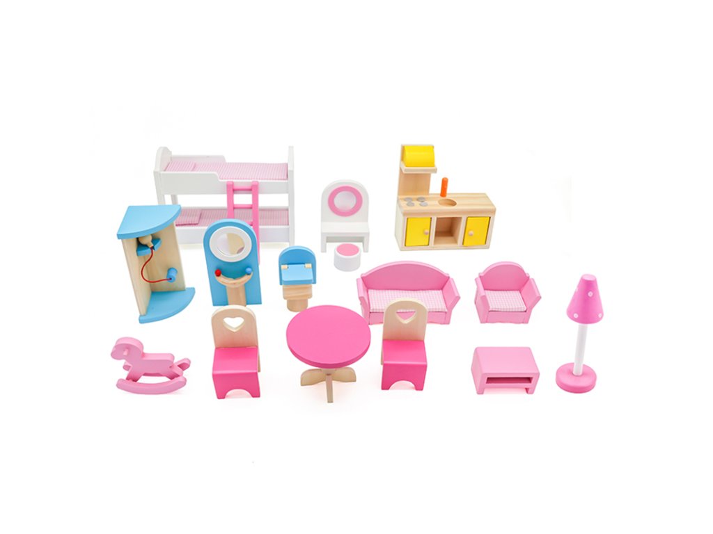 - Stylové doplňky: Součástí balení jsou nábytek a příslušenství jako postel, pohovka, židle, stůl, lampa, houpací kůň, schody a dokonce i toaletní stolek. Díky nim je každá hra jedinečná a realistická.