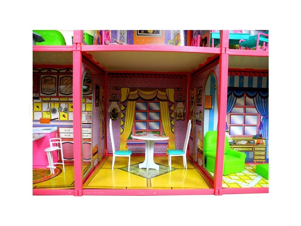 Domeček pro panenky se skládá ze 128 prvků. Domeček je pěkně vyrobený v živých atraktivních barvách s krásnými místnostmi. Na každém patře má domeček prostorné pokoje pro panenku nebo jiného maskota. Krásný domeček má 6 otevřených prostorů určených pro každodenní použití. Každý pokoj je zařízen podle preferencí majitele. Konstrukce je vyrobena z plastu, stěny a střecha jsou z lepenky. Místnosti jsou vzájemně propojeny, takže se panenky mohou mezi pokoji volně pohybovat.