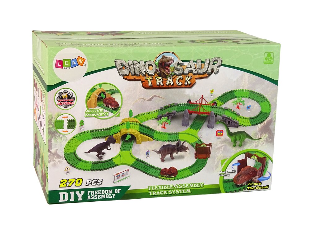 Dráha pro dinosaury se skládá z sady jednoduchých kolejí, které lze snadno spojit do různých konfigurací, vytvářet pro dinosaury různé trasy. Součástí sady jsou také pestrobarevné a realistické figurky těchto úžasných tvorů, které přitahují pozornost a povzbuzují děti k hře. Sada také obsahuje takové prvky jako rostliny a stromy, které lze umístit kolem dráhy a vytvořit tak realistickou scénu, v níž děti mohou tvořit vlastní příběhy o dinosaurech a hračky přeměnit na svůj vytvořený svět.