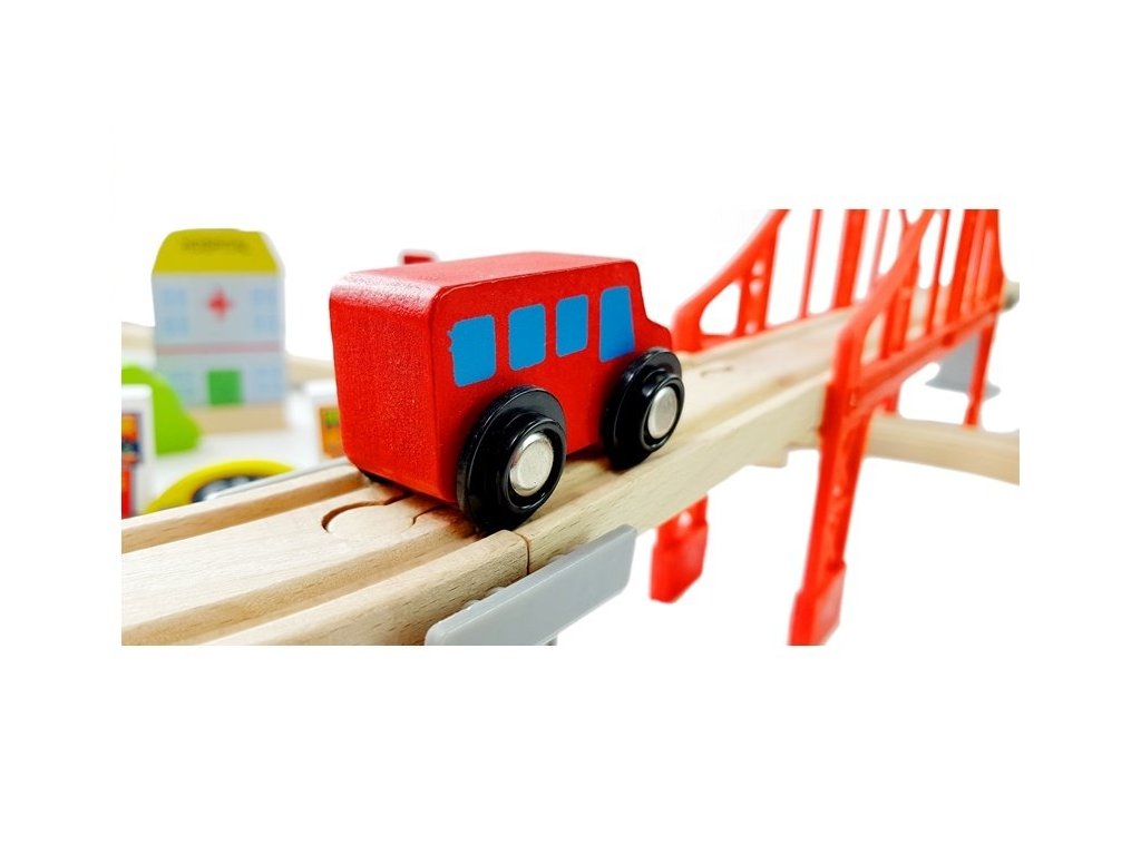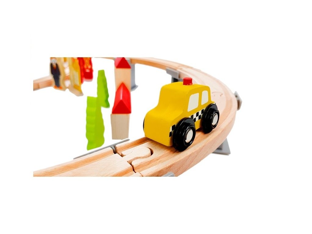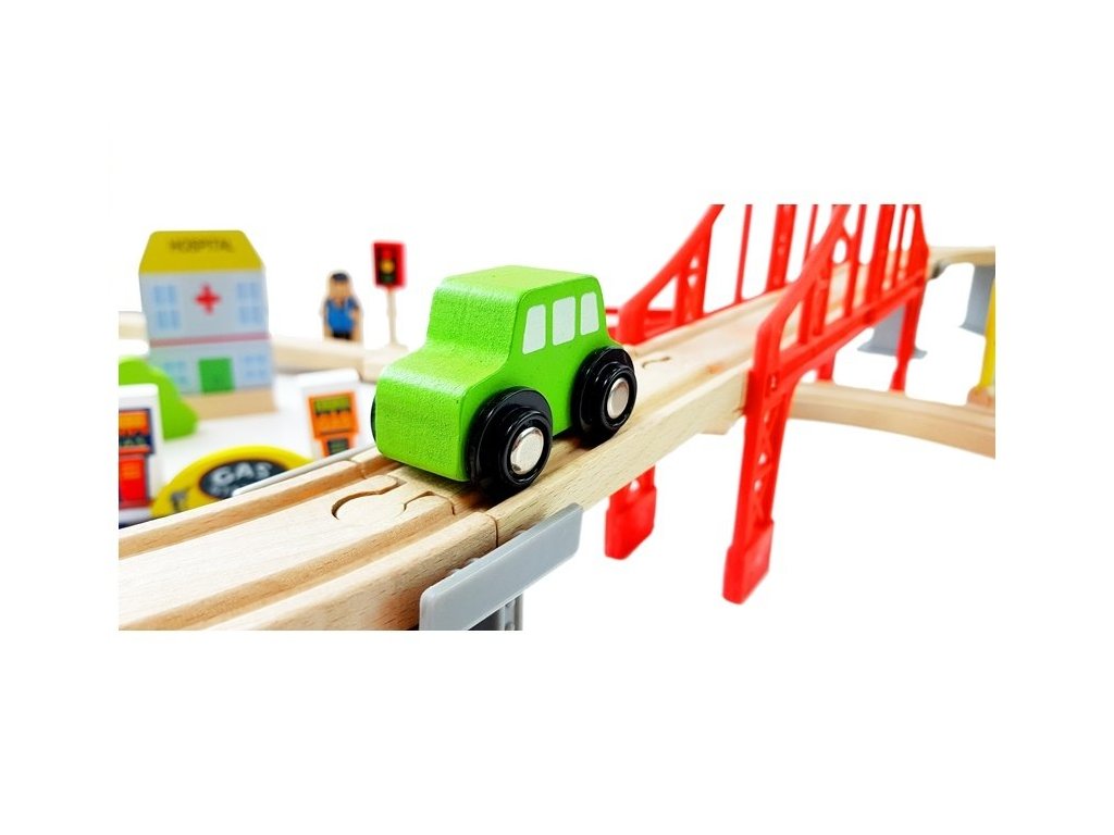 Dřevěná autodráha s příslušenstvím dosahuje velikosti až 110 cm a obsahuje 78 stavebních prvků charakteristických pro celé město. Díky řadě doplňujících prvků hračka zaručuje dlouhou a zajímavou zábavu. V sadě najde batole dekorativní doplňky, jako jsou stromy, dopravní značky, figurky a budovy. Jsme přesvědčeni, že tato ikonická hračka nikdy nevyjde z módy!