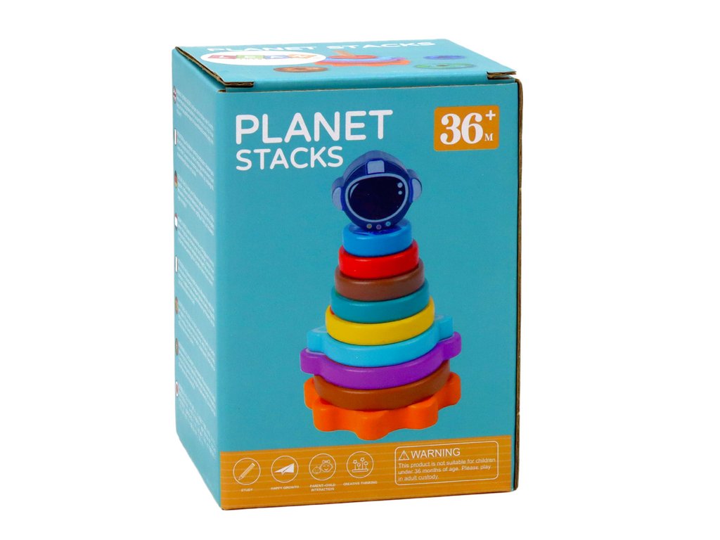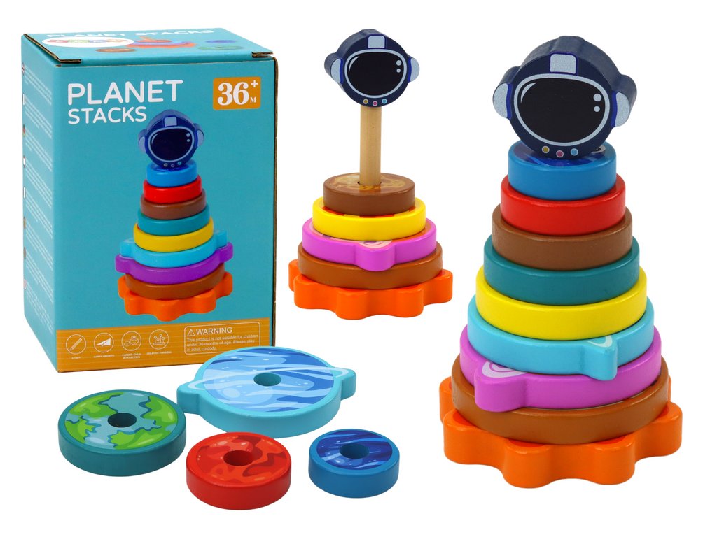 Tato kosmická hračka ve tvaru pyramidy je úžasné vzdělávací dobrodružství pro děti, které je povzbuzuje k objevování vesmíru a rozvoji logického myšlení. Sada se skládá z dřevěného základu ve tvaru sluneční soustavy a 8 planet a kosmické helmy.