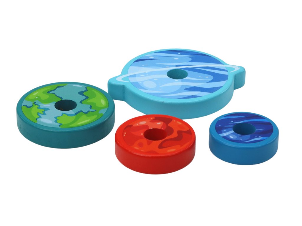 Hra spočívá v sestavení planet od největší po nejmenší, což simuluje pořadí planet ve skutečném vesmíru. Každá planeta má unikátní barvy, což usnadňuje jejich rozlišení a přidává vizuální prvek do hry. Dítě musí využít svou prostorovou představivost a schopnost porovnávání velikostí, aby správně sestavilo planety na základnu, začínající od největší (Slunce) po nejmenší.