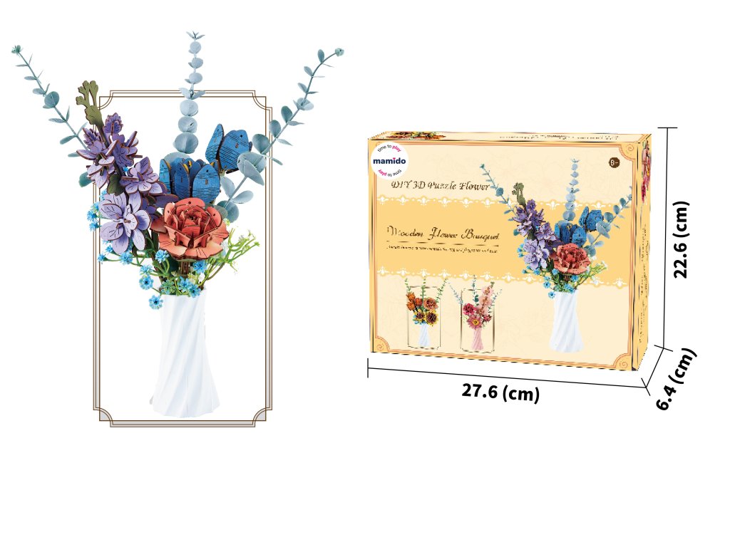 Objevte kouzlo kreativity s dřevěnou 3D skládačkou květinové kytice, která promění jednotlivé dílky v nádhernou dekoraci. Po sestavení získáte elegantní kytici s barevnými květy a listy, doplněnou bílou vázou, která ozdobí každý interiér. Kytice je nejen krásným designovým prvkem, ale i skvělým dárkem pro všechny milovníky tvoření a originálních dekorací.