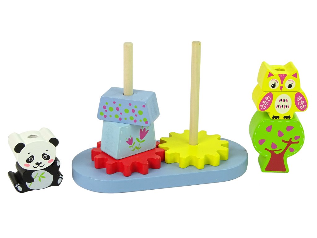 Zkuste spojit a uspořádat dvě zvířátka: pandu a sovu. Batole si může procvičovat manuální zručnost a přesnost pokládáním malých dřevěných kostek různých tvarů na oblouky.