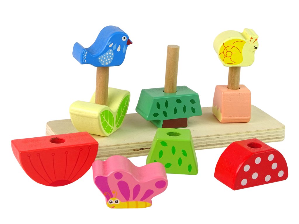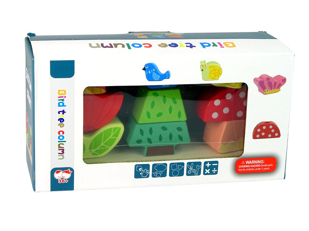 Sada se skládá z dřevěné základny se třemi vyčnívajícími oblouky. Kostky lze na každý z nich uspořádat v libovolném pořadí, nejlépe tak, aby do sebe vše zapadalo. Bloky představují rostliny a zvířátka, uspořádejte je tak, aby zvířata odpovídala svému přirozenému prostředí. Motýl se nejčastěji nachází na květině a pták na stromě.