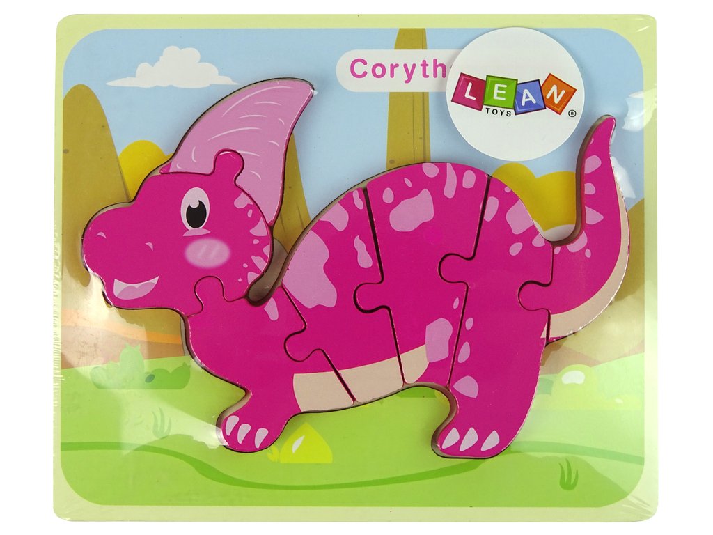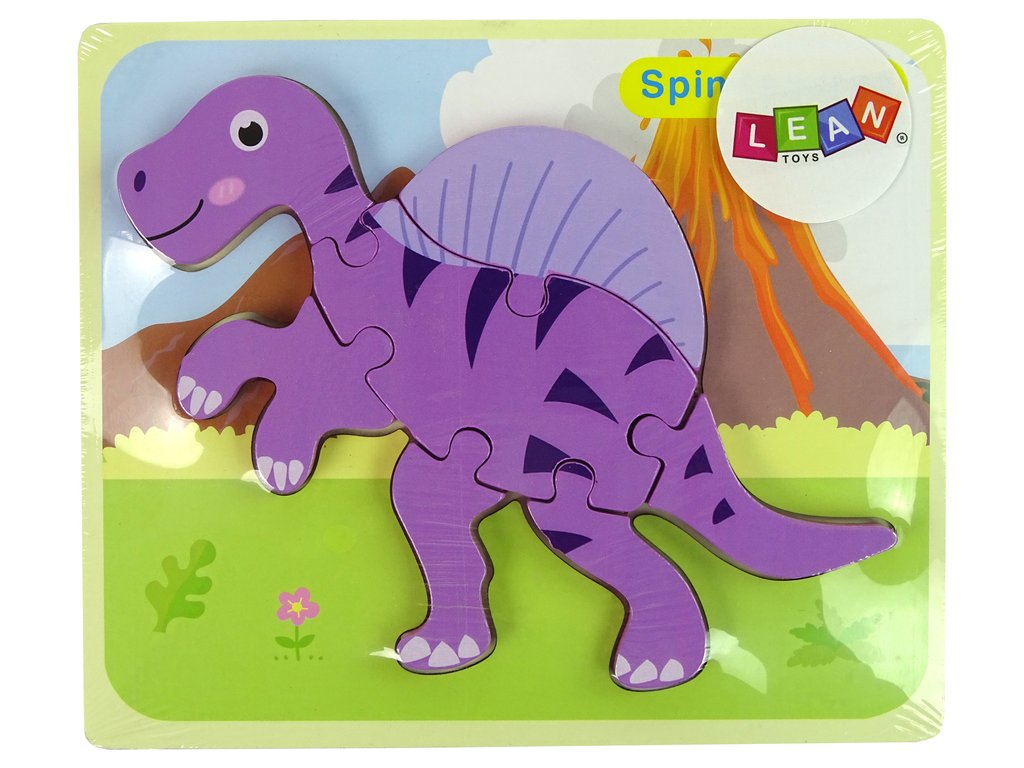Dřevěné puzzle dinosaurus Corythosaurus Spinosaurus fialové