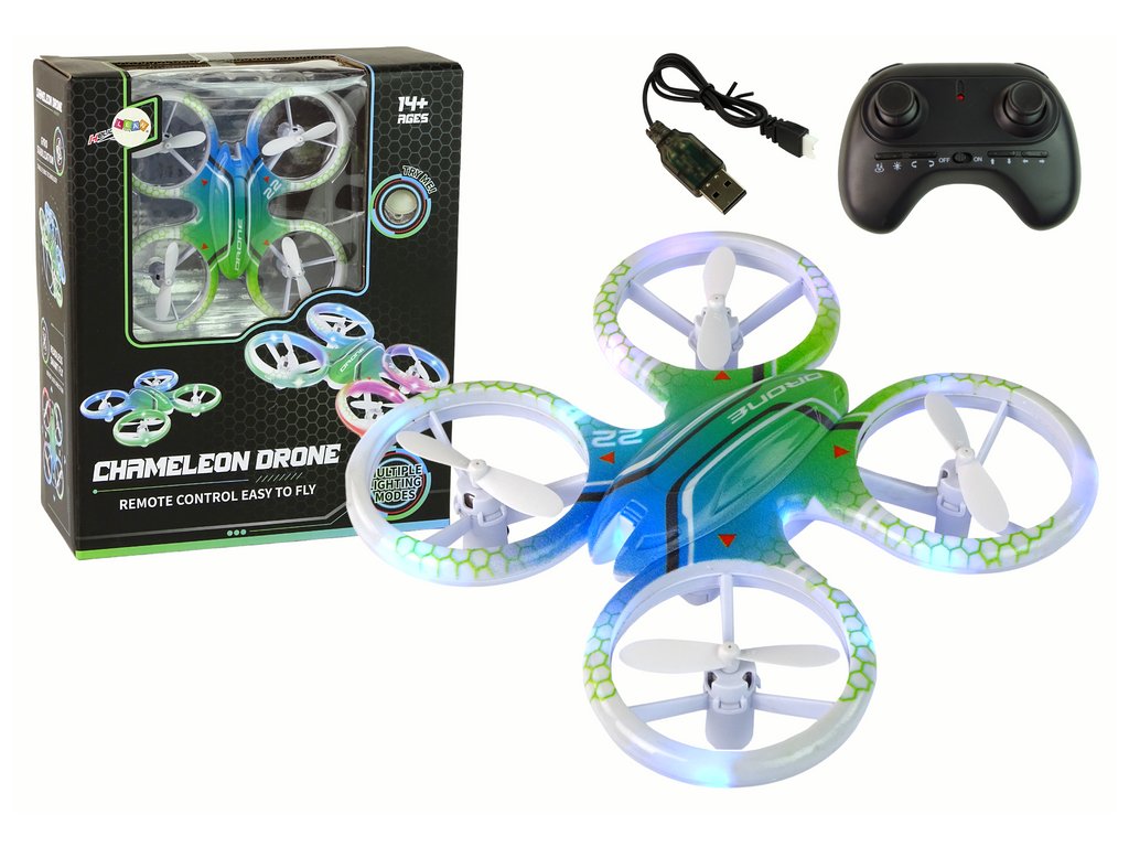 Tento dron je jedinečný díky svému barevnému designu, který přitahuje pozornost a dodává zábavě vizuální efekt. Díky dálkovému ovladači, který je součástí sady, jej mohou děti přesně ovládat a snadno provádět různé manévry.