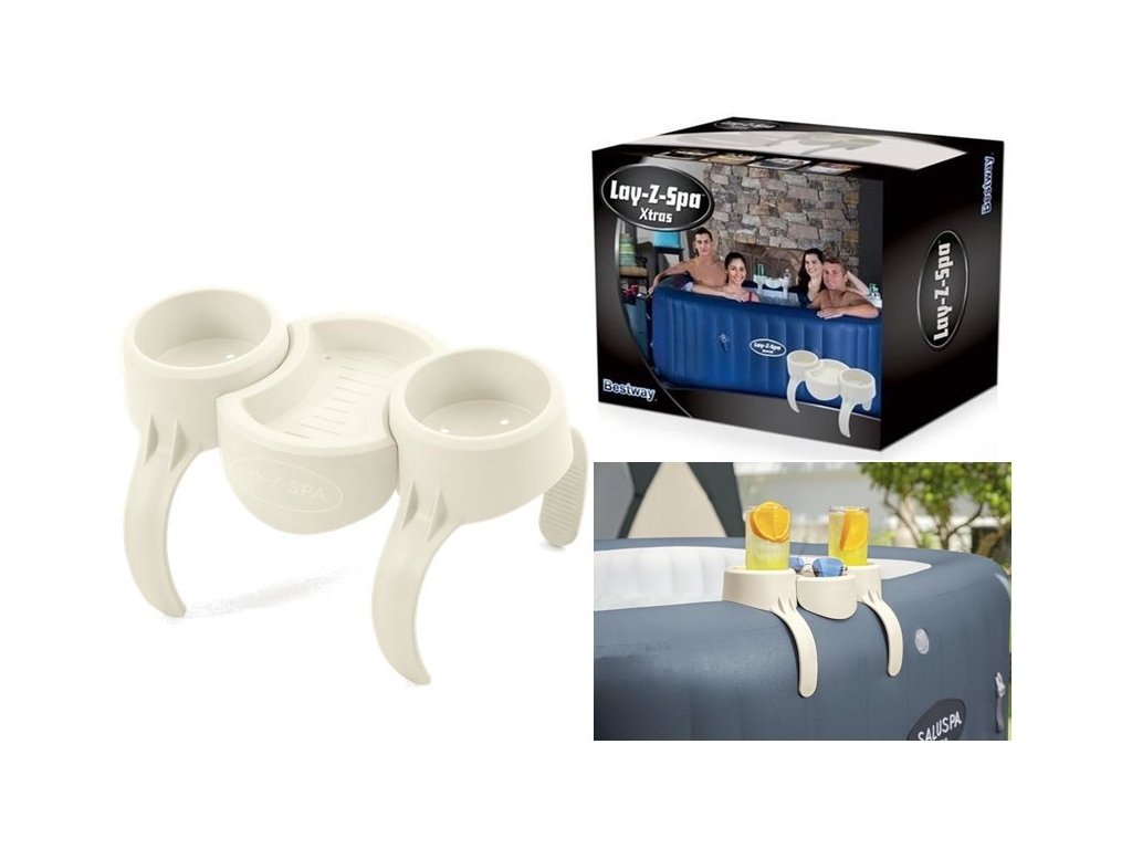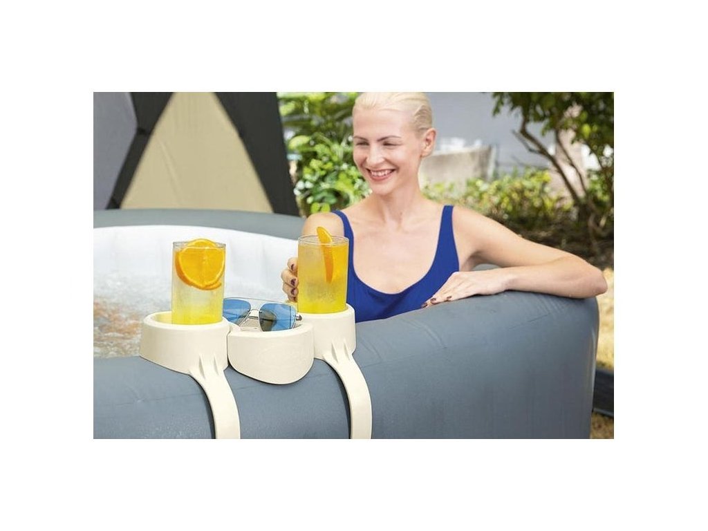 Rukojeť má univerzální velikost, takže do ní můžete vložit sklenici, plechovku nebo láhev. Na podnosu, na druhé straně, umístíte občerstvení pro každého gurmána. Držák je také kompatibilní s vířivkami Lay-Z-Spa a hodí se pro většinu bazénů z populární série BESTWAY (kromě MONAKA). Nemusíte tedy měřit a kontrolovat, zda madla budou u vašeho bazénu fungovat.
