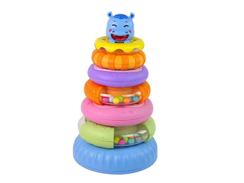 Pyramida se skládá ze šesti barevných kroužků, které lze na sebe skládat v různém pořadí a vytvořit tak pyramidu. Na vrcholu pyramidy je roztomilý usměvavý hroch. Každý kroužek má jinou velikost a barvu, což dětem umožňuje učit se rozlišovat barvy, velikost tvarů a procvičovat koordinaci.