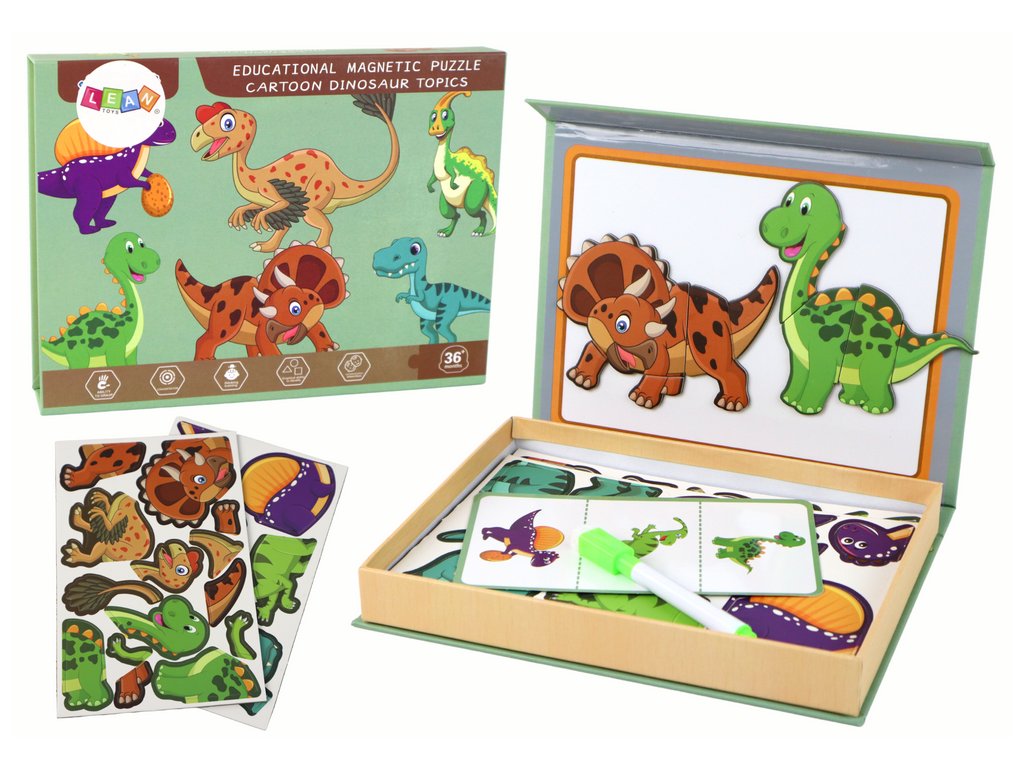 Zveme vás k objevení naší sady magnetických puzzle s motivem dinosaurů, které vás zavedou do fascinujícího světa prehistorických tvorů. Tato sada je skvělou zábavou a zároveň výborným způsobem, jak rozvíjet dětskou představivost, kreativitu a kognitivní schopnosti.