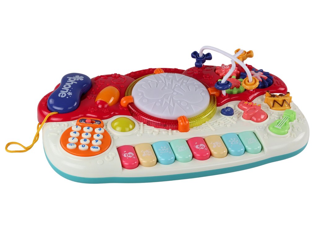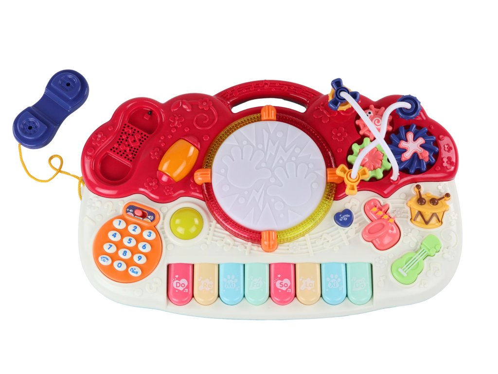 Integrovaný telefon vydává tři různé zvuky zvonícího telefonu, na panelu jsou umístěna čísla od 1 do 9 s možností regulace zvuku. Je to skvělá příležitost k učení čísel v angličtině a zároveň k rozvoji sluchu.