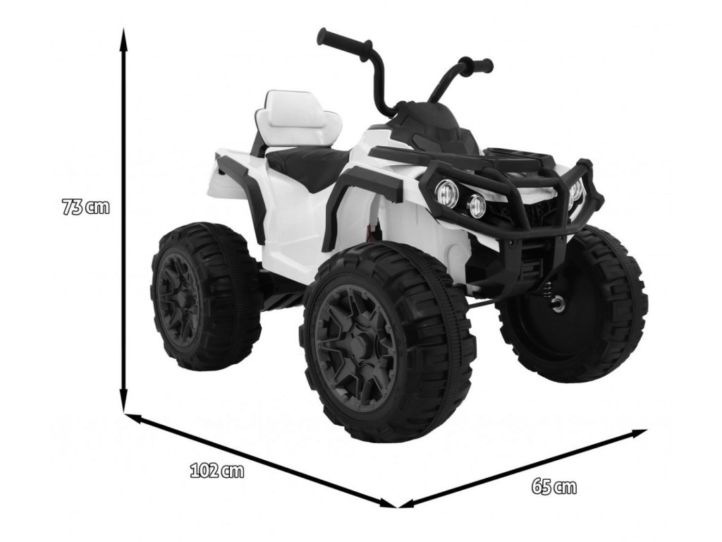 Dětská elektrická čtyřkolka pro děti je skvělým způsobem, jak uvítat děti do světa motorových vozidel. Elektrické čtyřkolky nabízí spoustu zábavy ať už při rodinných procházkách nebo trávení času na zahradě. Dítě se díky ježdění naučí řídit a zlepšuje motorické schopnosti. Čtyřkolka jezdí dopředu i dozadu a má možnost zrychlení. Kola jsou měkká EVA. Sedadlo je velmi pohodlné, ergonomicky tvarované, a tak dítě bude rádo usedat znovu za volant čtyřkolky. Na bezpečí dítěte dohlíží funkce automatické brzdy, která se sama aktivuje při uvolnění plynového pedálu. Na dítě můžete dohlížet i Vy díky dálkového ovládání. Dále má čtyřkolka LED osvětlení. Čtyřkolka je certifikována evropským označením bezpečnosti CE a je vhodná pro děti od 3 let.