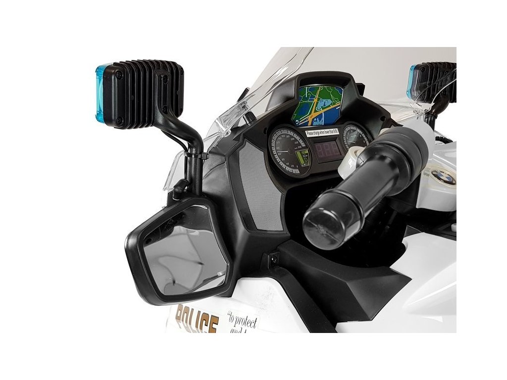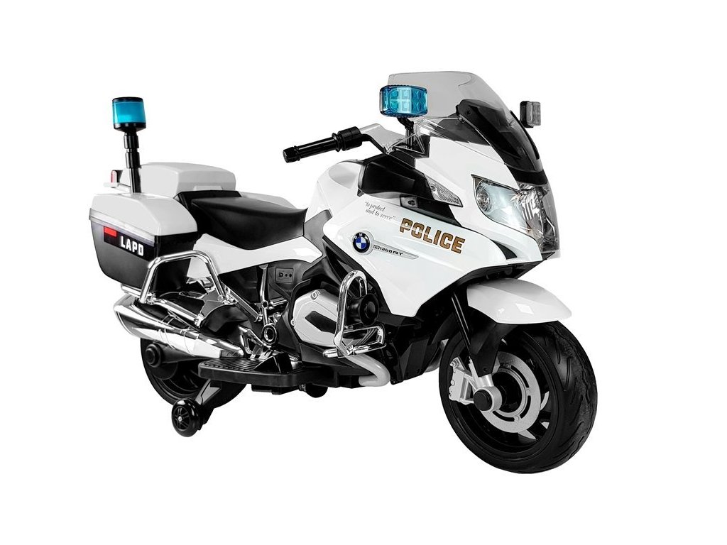 Elektrická motorka BMW pro malé závodníky je vyrobena z kvalitního tvrdého plastu. Za zmínku stojí, že motorka BMW R1200 má původní licenci BMW, což znamená, že je stejná jako její ekvivalent v plné velikosti. Dětská elektrická motorka pomáhá dětem v rozvoji řidičských schopností a rovnováhy. Je to výborný doplněk na procházky s rodinou anebo trávení času na zahradě. Policejní elektrická motorka je vybavená předními LED světly. Motorka má rychlost od 3 do 5 km/h. Dětská elektrická motorka byla navržena pro všechny děti starší 3 let.