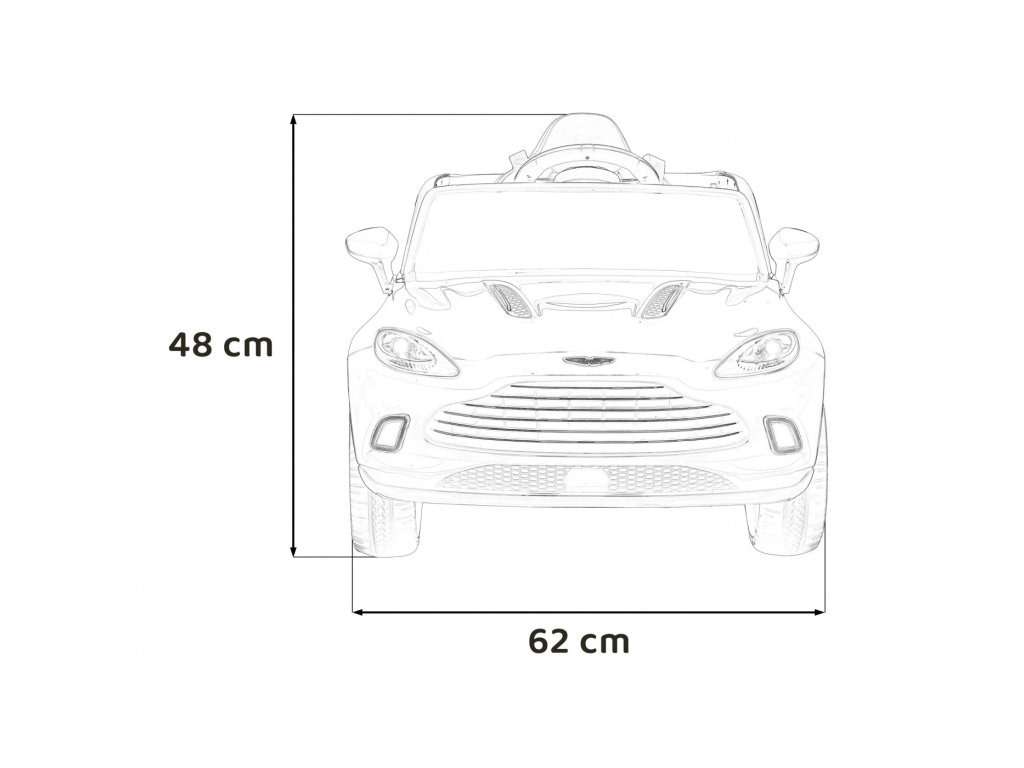 Elektrické autíčko Aston Martin DBX má čtyři motory s celkovým výkonem 100W a baterii s kapacitou 12V 7Ah. O pohodlnou jízdu se postarají pěnová EVA kola a sedačka potažená ekologickou kůží. Dítěti jízdu určitě zpříjemní hudební panel s MP3, USB, Bluetooth a Rádiem. Nosnost autíčka je 30 kg. Autíčko má přední i zadní LED osvětlení a otevírací dveře.