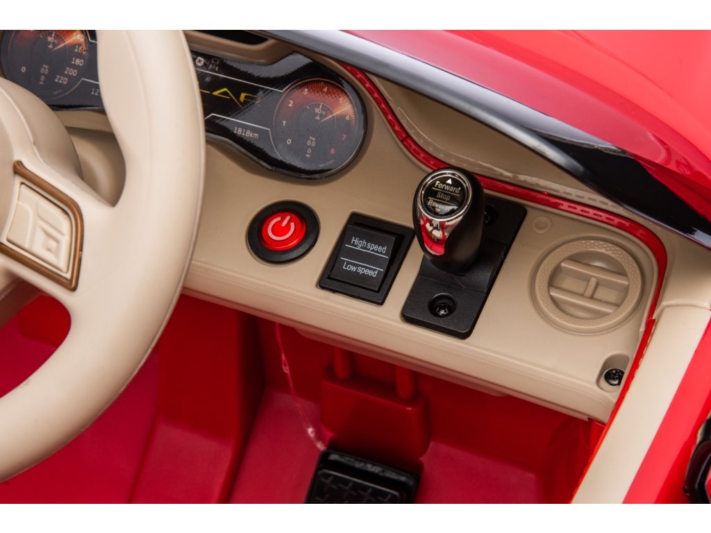 Interiér autíčka je vybaven hudebním panelem s Bluetooth a vstupy AUX, USB, SD, a tlačítky s melodiemi. Na cestu si posvítíte předními i zadními LED světly.