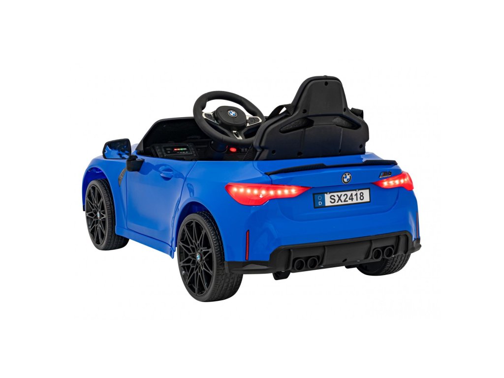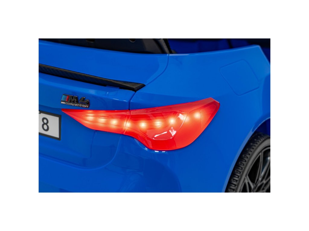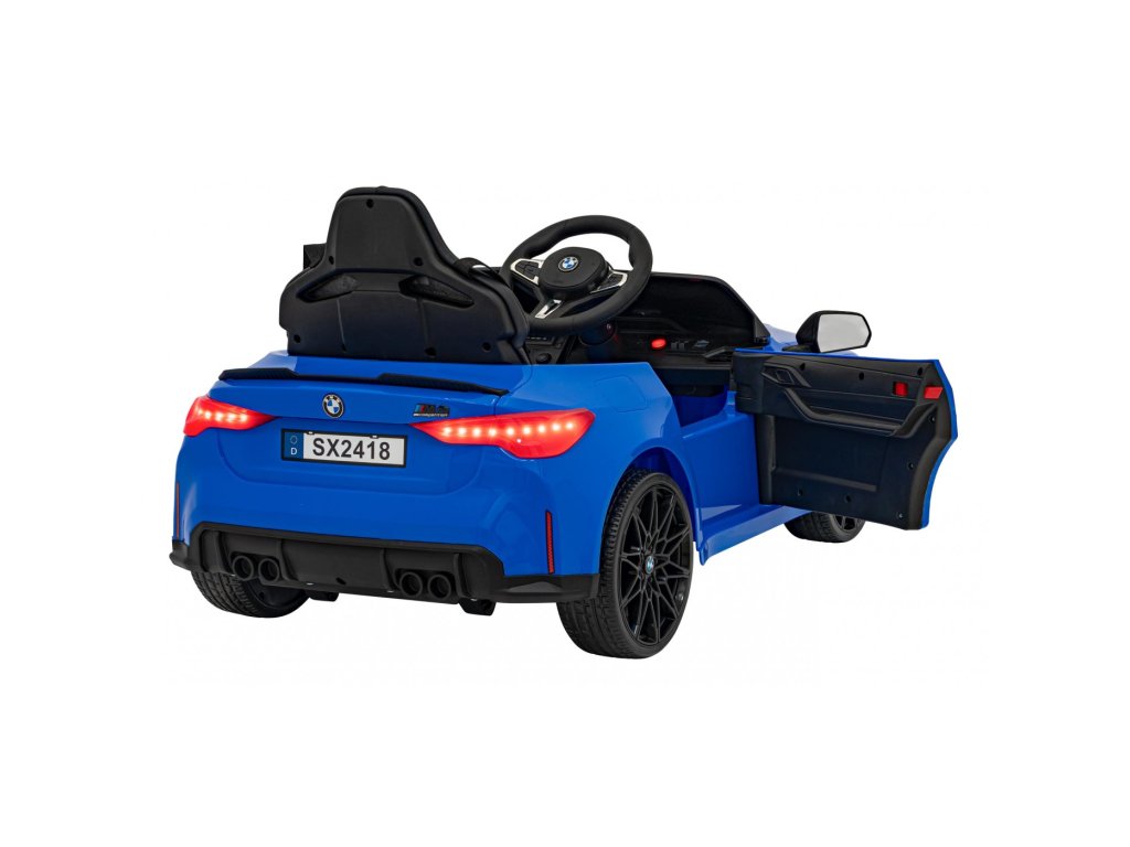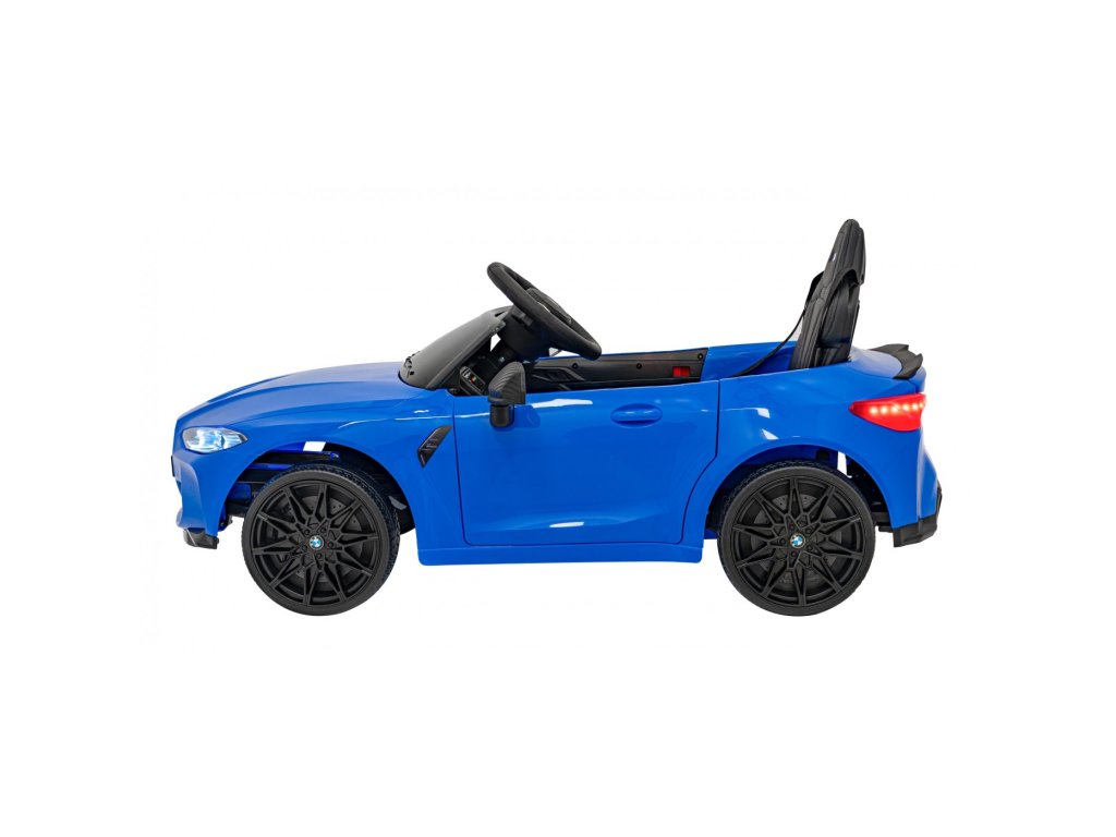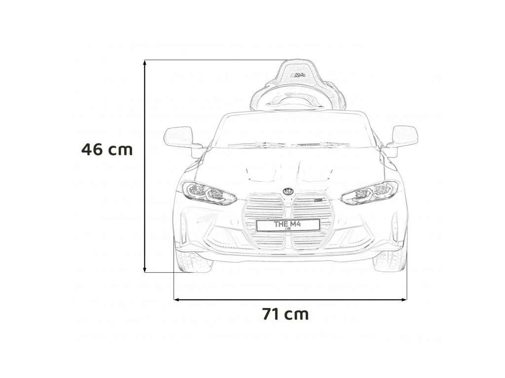Elektrické autíčko BMW M4 má dva motory s celkovým výkonem 70W a baterii s kapacitou 12V 7Ah. O pohodlnou jízdu se postarají pěnová EVA kola a sedačka potažená ekologickou kůží. Dítěti jízdu určitě zpříjemní hudební panel s MP3, USB, AUX a Bluetooth. Nosnost autíčka je 30 kg. Autíčko má přední i zadní LED osvětlení a otevírací dveře.