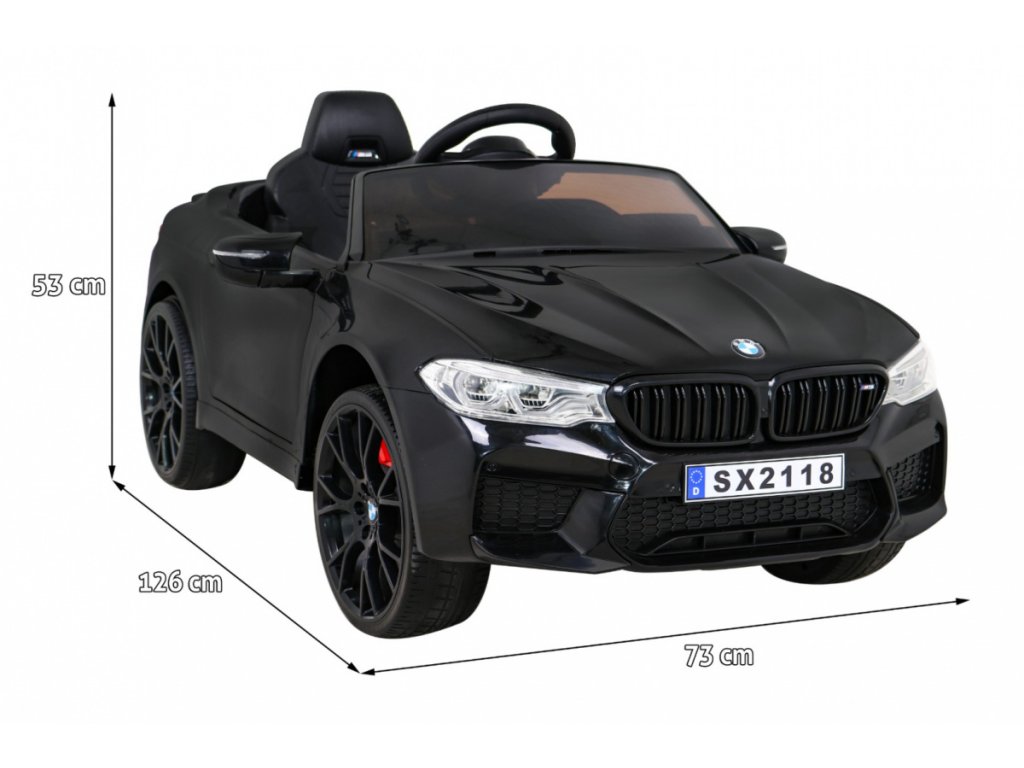 Elektrické autíčko je licencované společností BMW. Elektrické autíčko BMW M5 má dva motory s 25 000 otáčkami za minutu a dvěma bateriemi o kapacitě 12V 7Ah. Autíčko má přední a zadní LED světla. Vozítko má hudební panel, který má MP3, vstup pro USB a předehrané melodie. Na volantu se nachází klakson. Autíčko má funkci driftování.