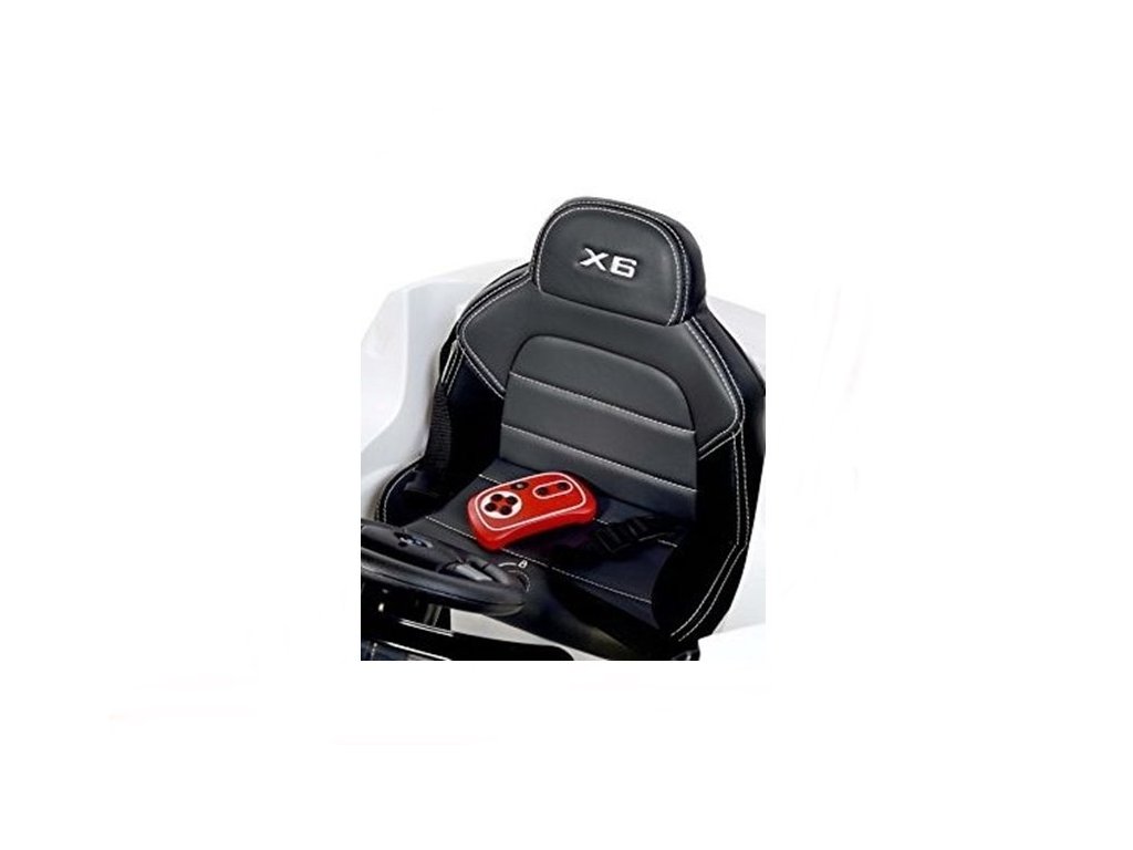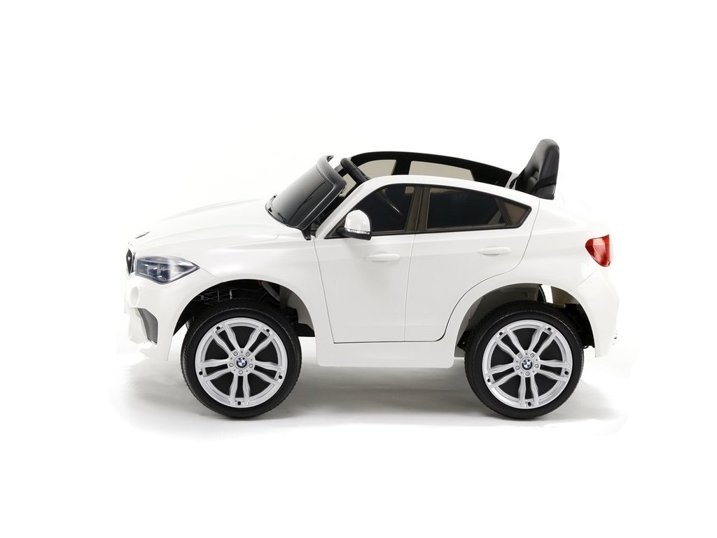 Dětské elektrické autíčko BMW X6 s inovativním dálkovým ovládáním určeným pro rodiče. Elektrické autíčko má pohodlnou sedačku a pro bezpečnost dítěte je na sedačce umístěn bezpečnostní pas. Autíčko je vybaveno palubní deskou, volantem, svítícími předními světly a panelem audio. Vozidlo lze ovládat dvěma způsoby, bud' pomocí dálkového ovladače, který je určený pro rodiče, kdy rodič sám volí směr a rychlost jízdy nebo dítě může řídit autíčko zcela samostatně. Kola elektrického autíčka jsou měkká pěnová a umožňují tak plynulou a příjemnou jízdu. BMW X6 pro každého milovníka velkých autíček!