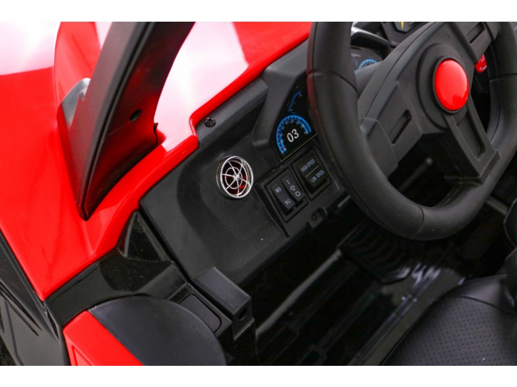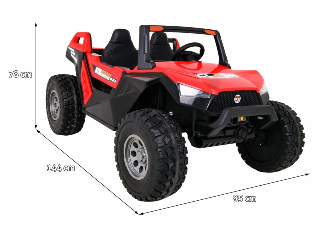 Elektrické autíčko buggy je určeno pro děti s nosností do 30 kg. Je vybaveno zvukovými i svítícími efekty. Dálkový ovladač má bezpečnostní tlačítko Stop pro okamžité zastavení vozidla. Díky náhonu na čtyři kola zdoláte menší kopce či nezpevněný typ terénu.