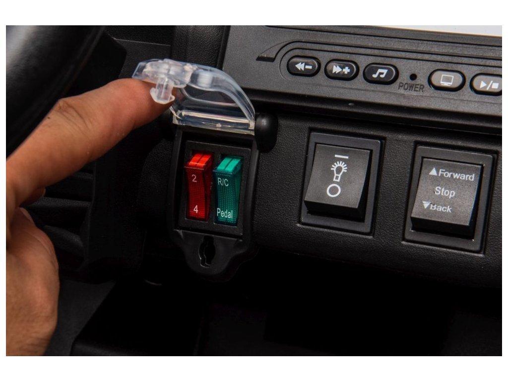 Autíčko můžete ovládat pomocí dálkového ovládání, které pracuje na frekvenci 2,4 GHz. Na dálkovém ovladači jsou tři rychlosti a bezpečnostní tlačítko STOP, které po zmáčknutí okamžitě zastaví autíčko.