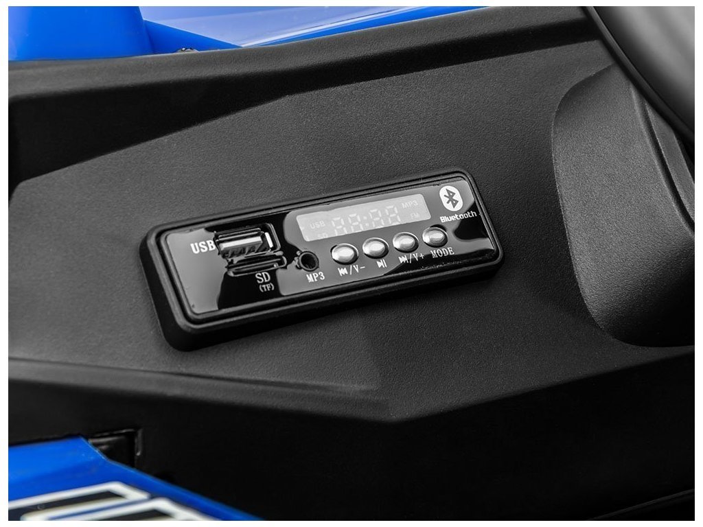 - Hudební panel: MP3, SD, FM rádio. předehrané melodie, AUX, USB, Bluetooth