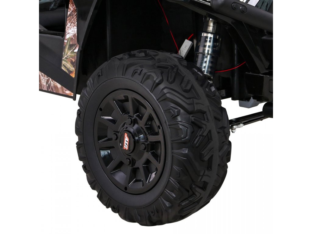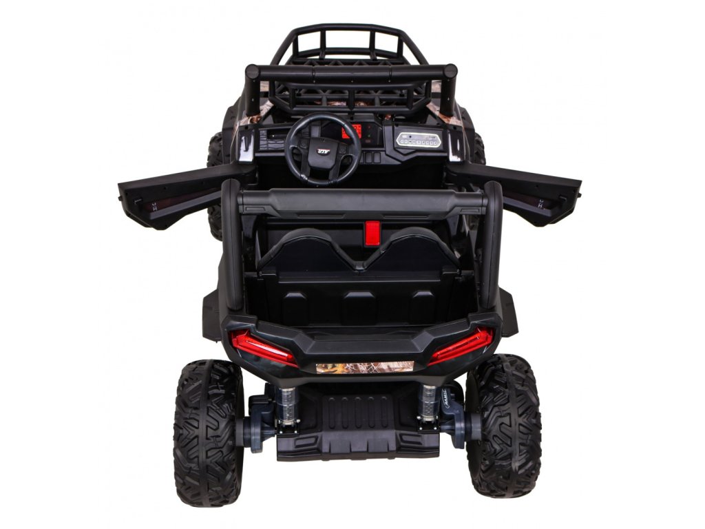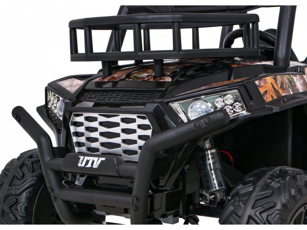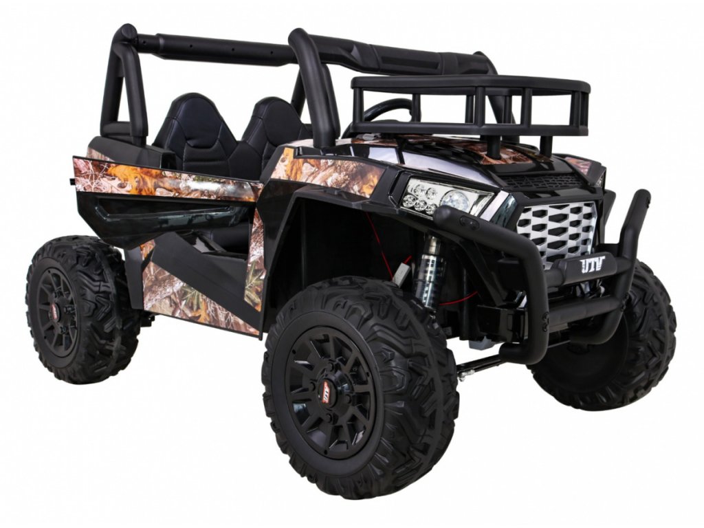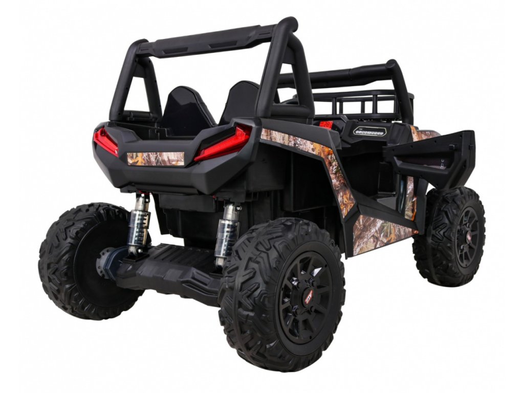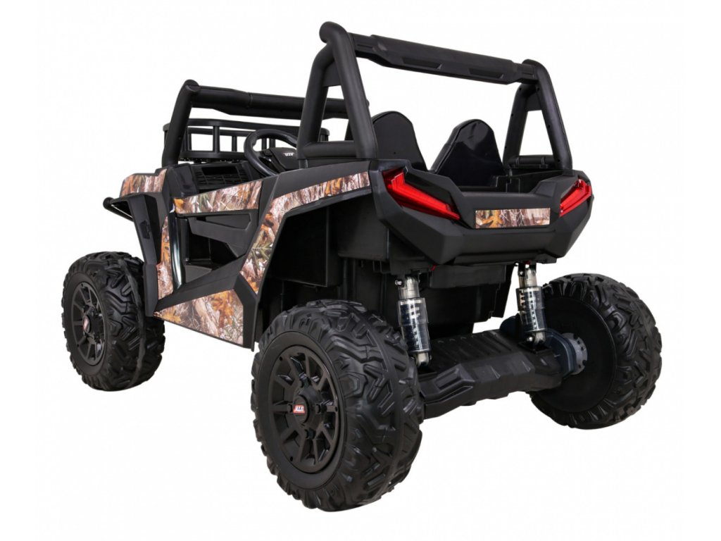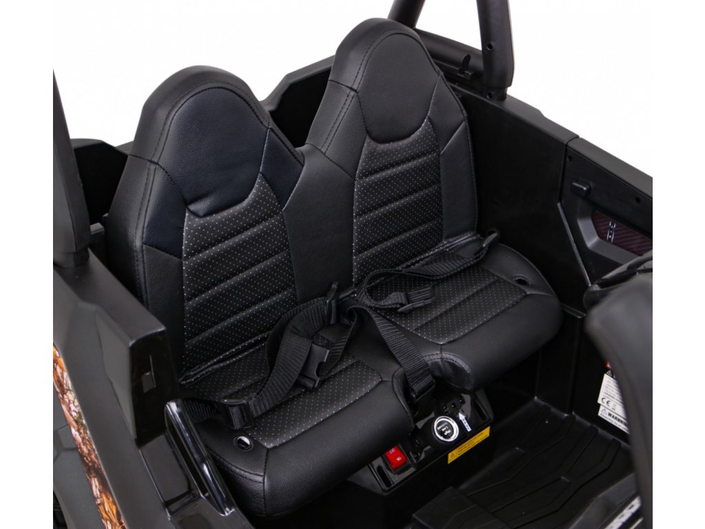 Dětské elektrické auto Buggy UTV se dvěma výkonnými elektrickými motory 200W. Autíčko hravě zvládne jakýkoliv terén. Do sedačky z měkké ekologické kůže se pohodlně posadí i dvě děti, jelikož se Buggy pyšní nosností až do 50 kg.