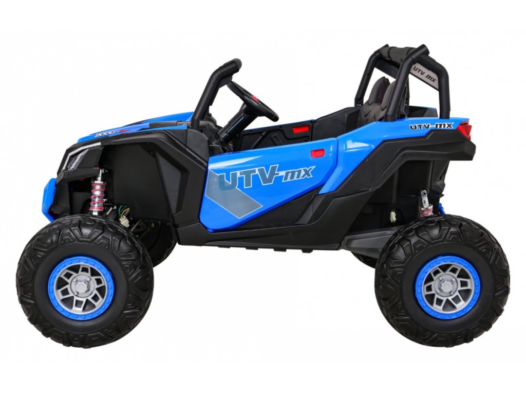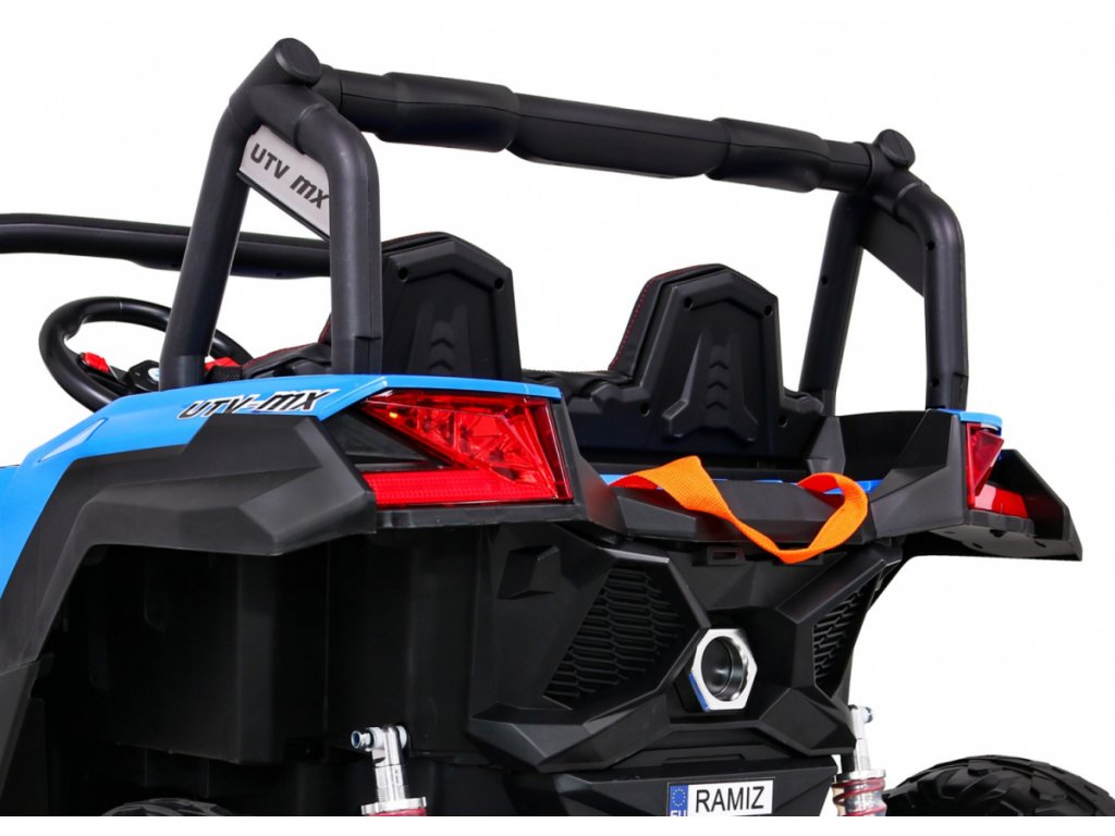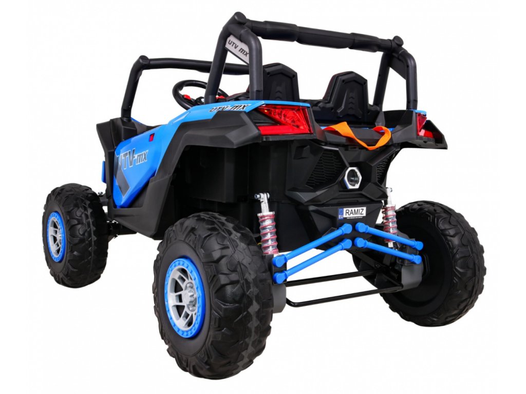 Dětská elektrická Buggy UTV-MX se čtyřmi výkonnými elektrickými motory 60W a baterií 24V 7Ah. O pohodlnou jízdu se postarají velká pěnová EVA kola, která společně s motory zdolají terén či nezpevněný typ povrchu.