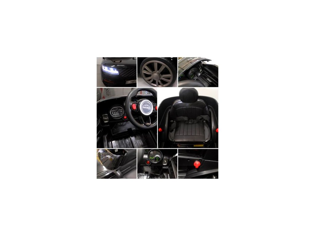Dětské autíčko Cabrio F4 je vybaveno pěnovými koly EVA, která jsou tichá a při jízdě neruší. Interiér autíčka je vybaven sedadlem s bezpečnostními pásy, hudebním panelem se vstupem MP3, USB a tlačítky s melodiemi. Na cestu si posvítíte předními a zadními světly.