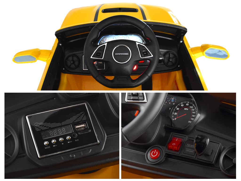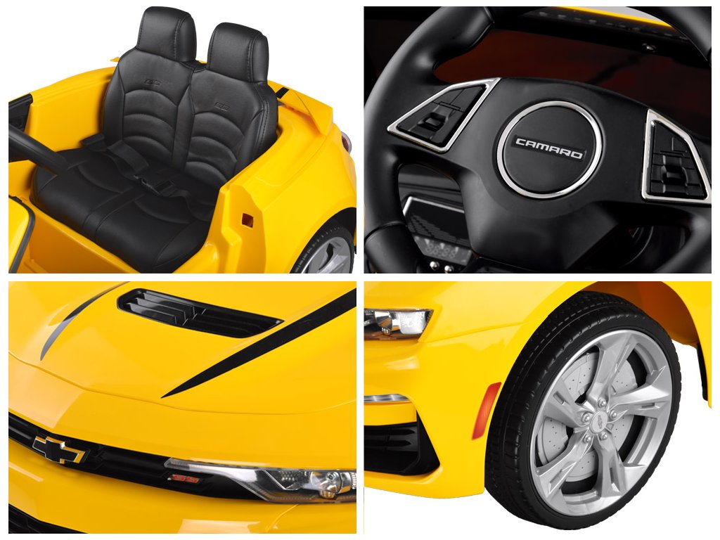 Elektrické autíčko Chevrolet Camaro má výkonnou baterie s kapacitou 12V 7Ah a dva motory s výkonem 13 000 otáček za minutu. Autíčko má dva rychlostní stupně vpřed a jeden rychlostní stupeň vzad. Jízdu dítě zpříjemní hudební panel s MP3, USB a předehranými melodiemi. Maximální nosnost autíčka je 25 kg. Rychlost autíčka je 3 - 5 km/h.