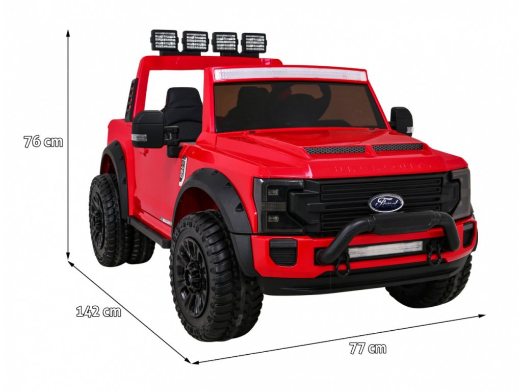 Dětské elektrické autíčko je licencovaný produkt značky Ford. Elektrické autíčko Ford Super Duty se čtyřmi výkonnými elektrickými motory 45W a baterií 12V 14Ah. O pohodlnou jízdu se postarají velká pěnová EVA kola. Zádní kola jsou zdvojené, tím pomůžou autíčku zdolávat terén a nezpevněný typ povrchu.
