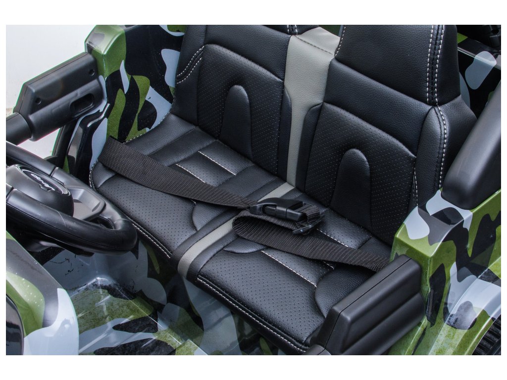 Elektrické autíčko Jeep Wrangler má dva motory o výkonu 45W a baterii s kapacitou 12V 7Ah. Elektrické autíčko má hudební hudebním panelem se vstupy pro MP3, USB a micro SD. Sedadlo je vyrobeno z ekologické kůže. O pohodlnou jízdu se postarají kola, které jsou vyrobena z EVA pěny.