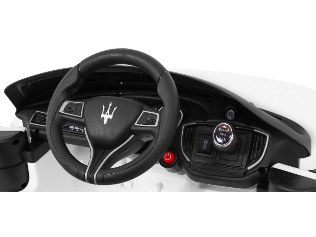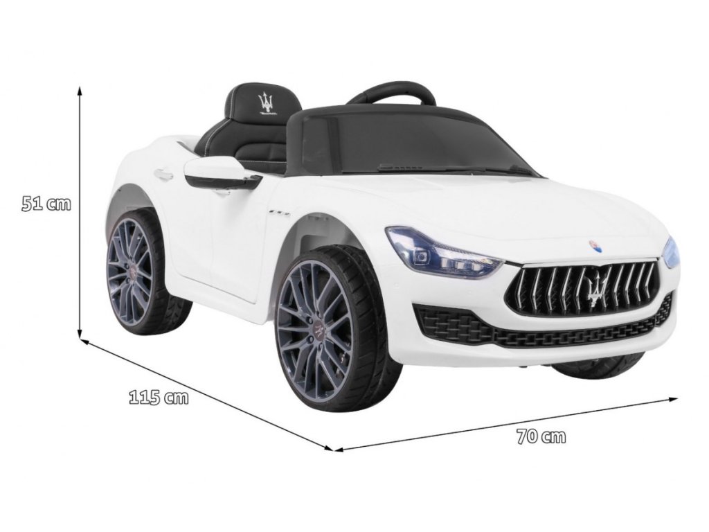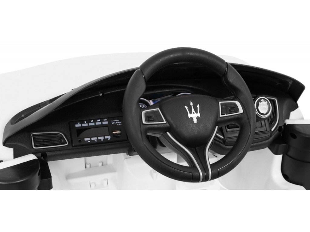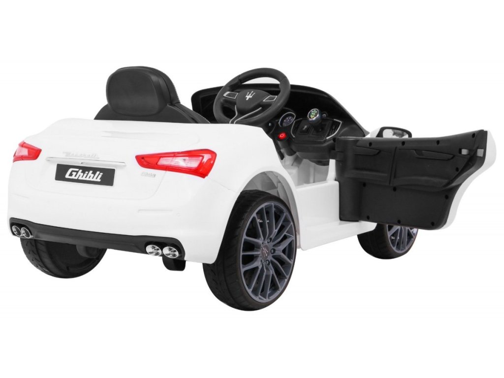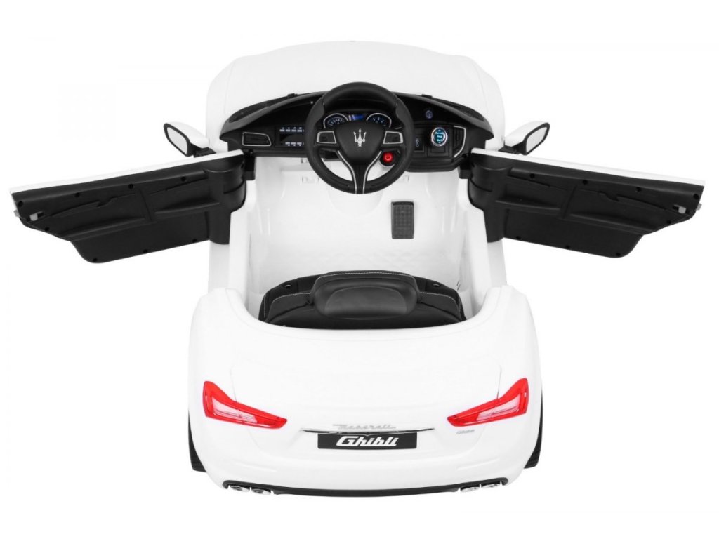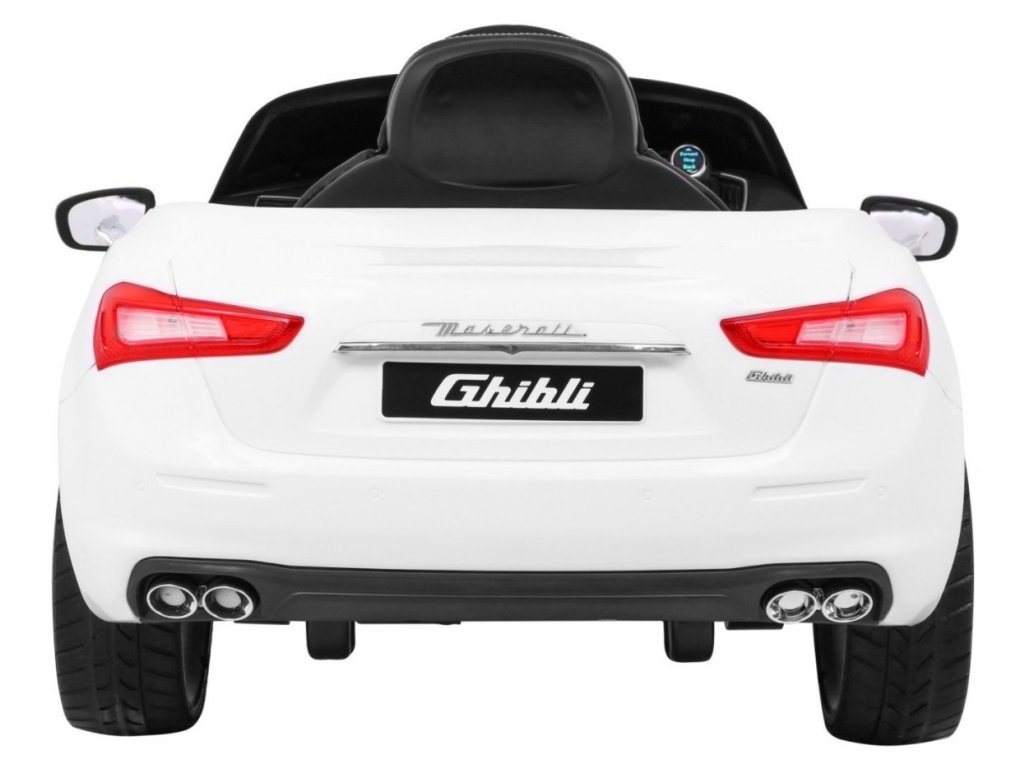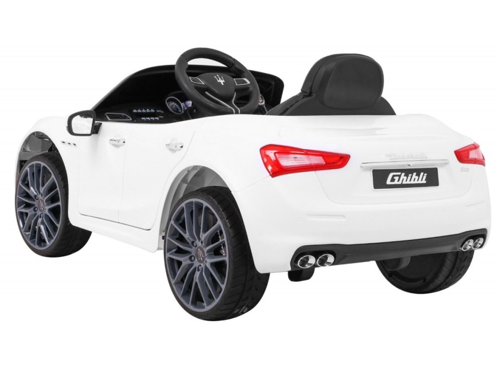 Elektrické autíčko Maserati Ghibli je vybaveno dvěma motory o výkonu 12V s 16 000 otáčkami za minutu a baterií o kapacitě 12V 7Ah. Autíčko má přední a zadní LED světla. Vozítko má hudební panel, který má MP3, vstup pro SD kartu, AUX, USB a předehrané melodie. Na volantu se nachází klakson.