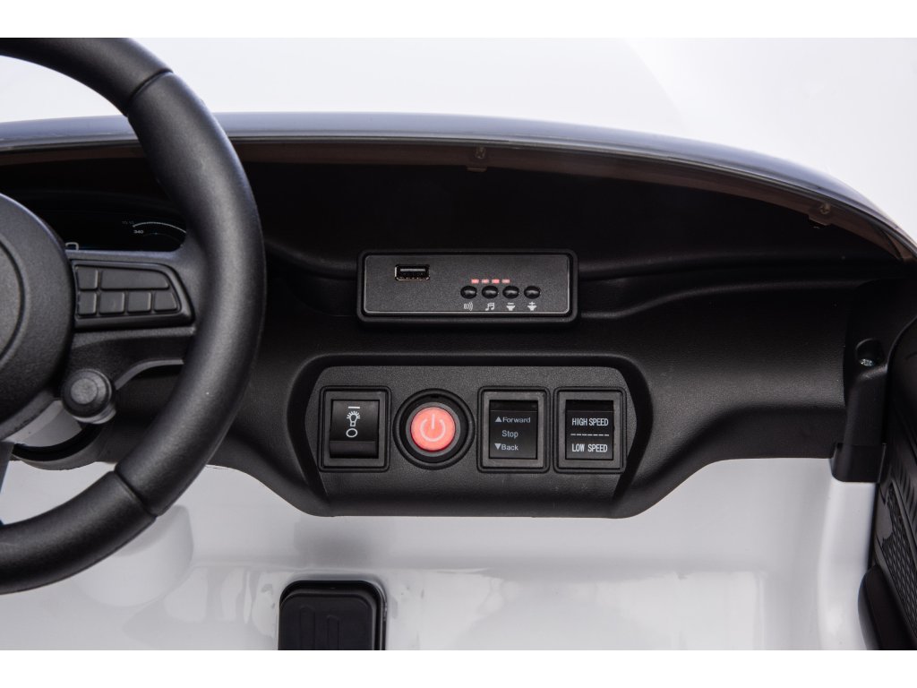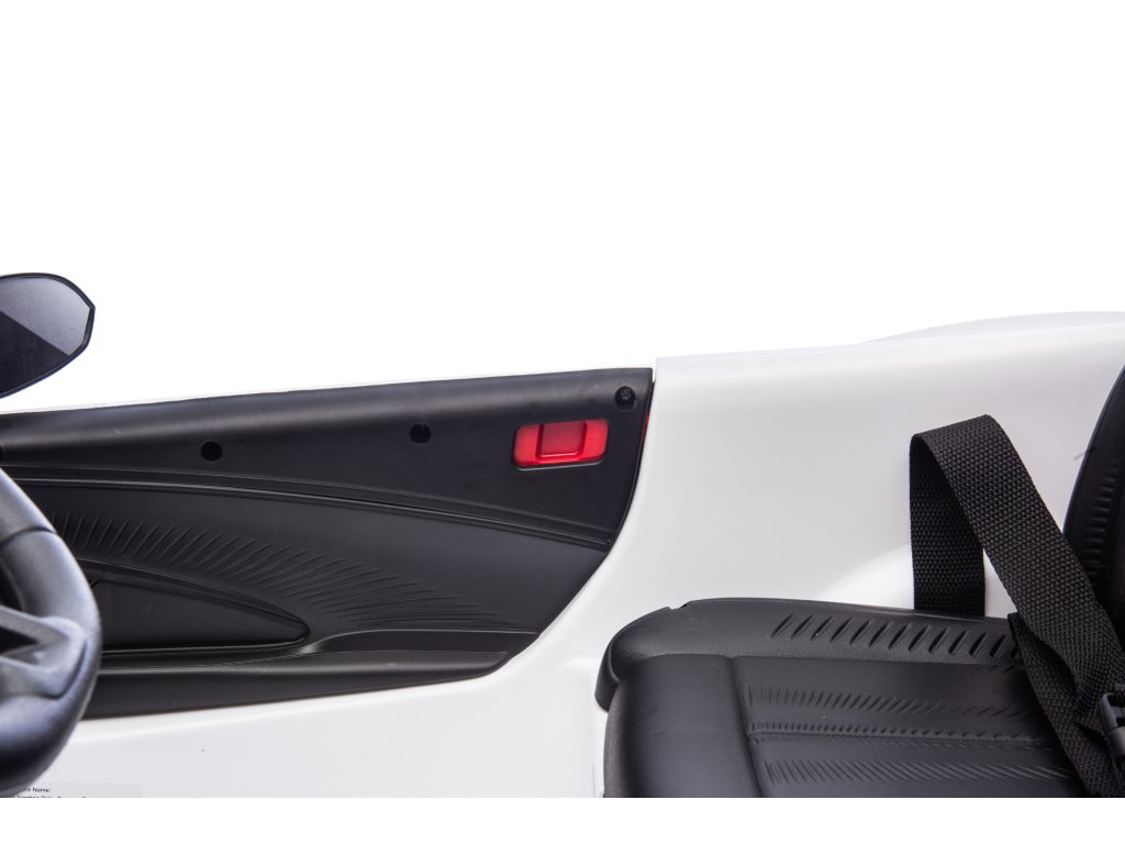 Autíčko má sedačku z ekologické kůže a 3-bodové bezpečnostní pásy, které se postarají o bezpečnou jízdu. Maximální zatížení autíčka je 60 kg. Vozítko má otevírací dveře.