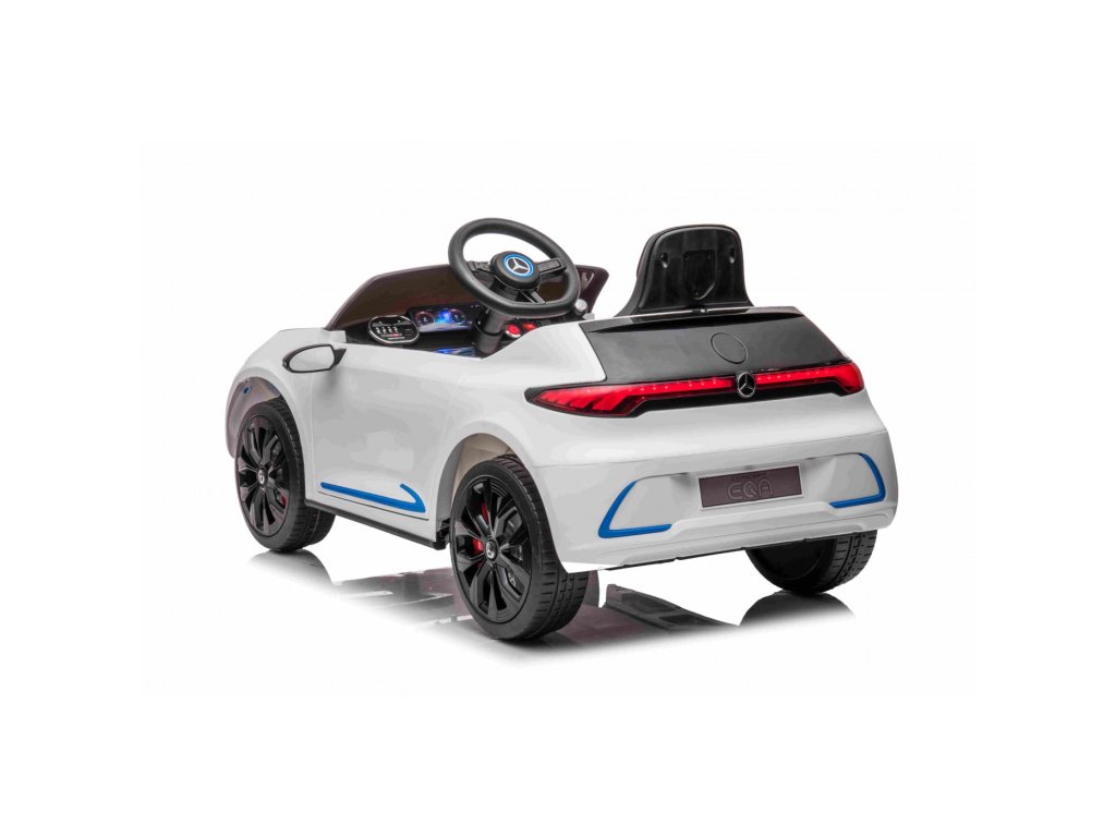 Elektrické autíčko Mercedes AMG EQA má výkonnou baterií s kapacitou 12V 7Ah a dva motory s výkonem 45W. Autíčko má hudební panel se vstupem pro MP3, USB, SD kartou a předehranými melodiemi. Výhodou autíčka je kožená sedačka s bezpečnostními pásy. Autíčko je vybaveno koly z EVA pěny, předními a zadními LED světly a klaksonem. Maximální zatížení autíčka je 30 kg.