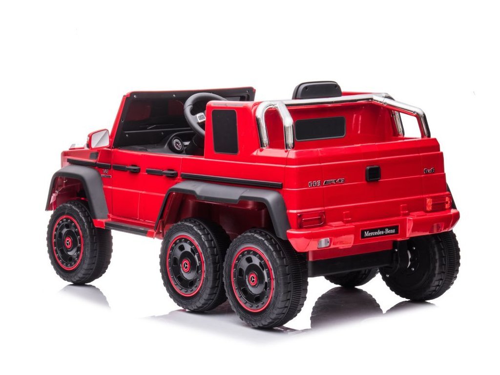Elektrické autíčko Mercedes Benz G63 přijíždí na šesti kolech a má čtyři elektrické motory s výkonem 35W, díky kterým zdoláte mírné kopce i nezpevněný povrch. Dítě se posadí do pohodlně tvarované sedačky z ekologické kůže a na cestu si posvítí LED světly. Jízdu jistě zpříjemní zvukové efekty, můžete použít vstup pro USB, SD kartu nebo MP3.