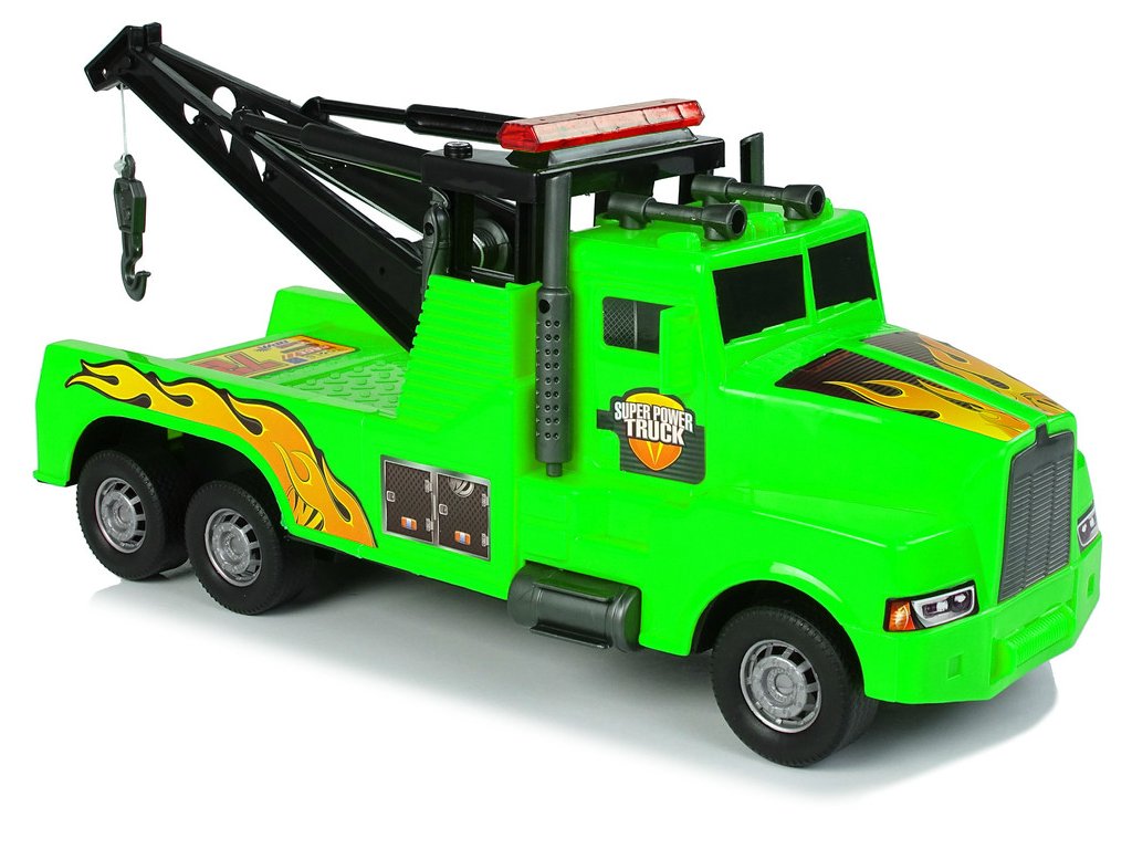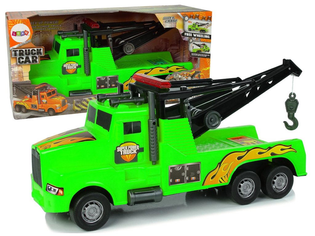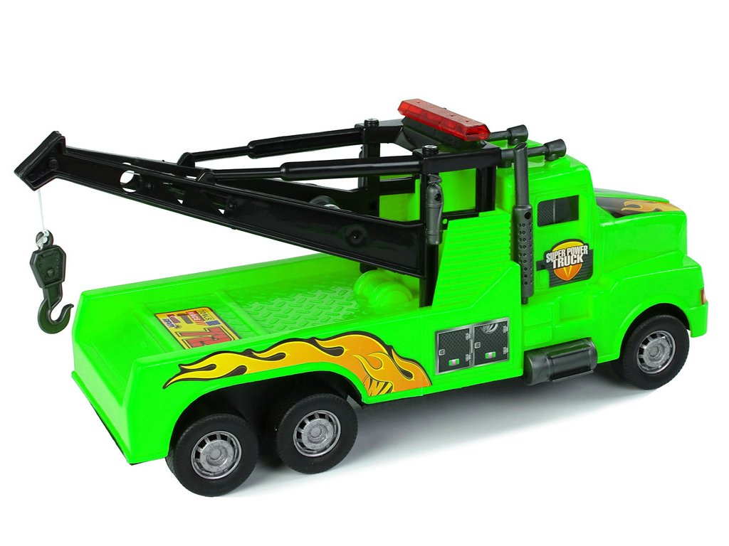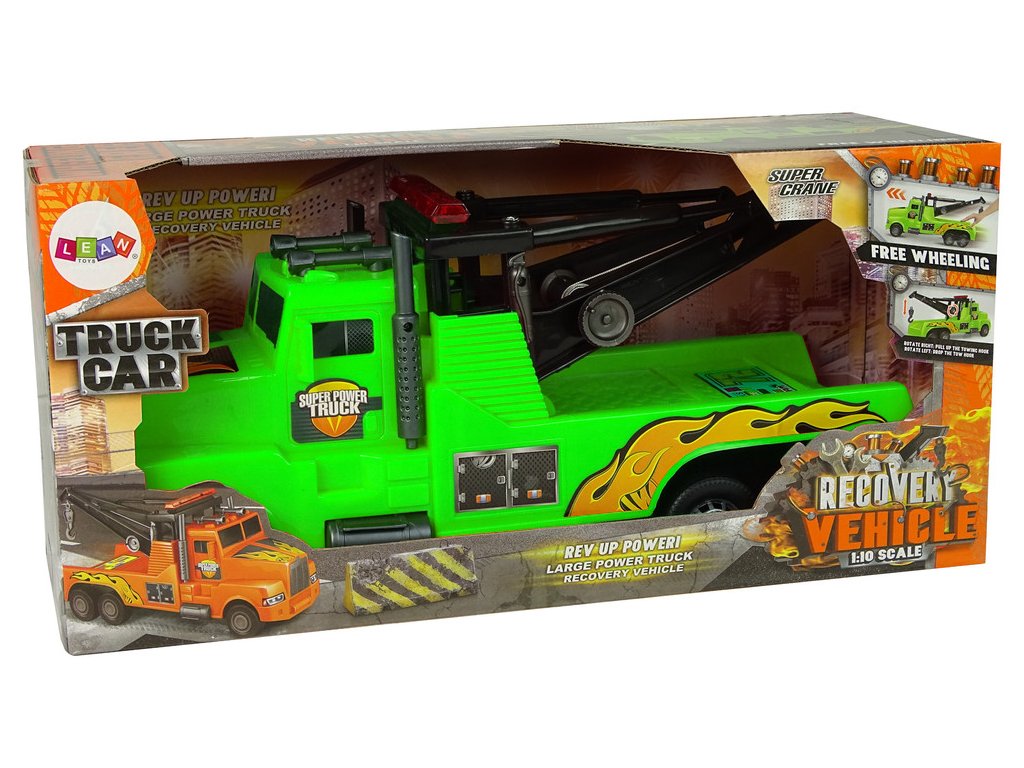 Každý detail je dokonale reprodukován. V zadní části vozu je jeřáb s tažným lanem a na úplném konci je háček, stačí připojit další hračku a převézt ji na správné místo. Další výhodou je navíjecí tažné lano pomocí kliky na boku vozu a třecí pohon.