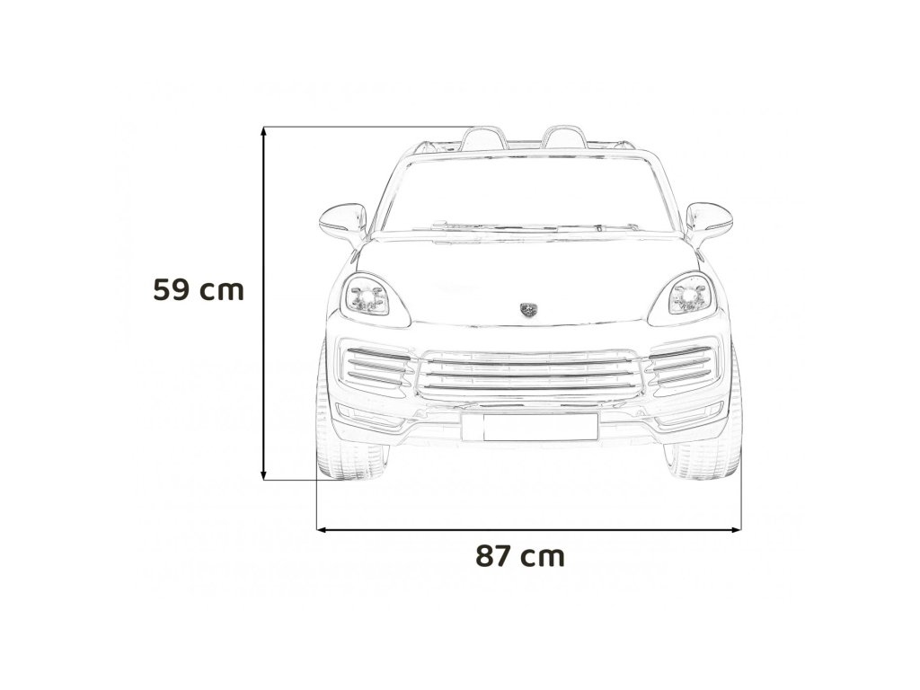 Elektrické autíčko Porsche Cayenne S má dva motory s celkovým výkonem 70W a baterii s kapacitou 12V 7Ah. O pohodlnou jízdu se postarají pěnová EVA kola a sedačka potažená ekologickou kůží. Dítěti jízdu určitě zpříjemní hudební panel s MP3, USB, AUX a vstupem pro SD kartu. Nosnost autíčka je 30 kg. Autíčko má přední i zadní LED osvětlení a otevírací dveře.