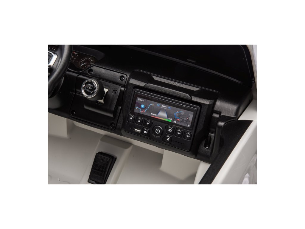 Vozidlo lze ovládat i dálkovým ovladačem, který umožňuje regulaci rychlosti, změnu směru jízdy a disponuje bezpečnostním tlačítkem Stop pro okamžité zastavení. Autíčko je vybaveno funkcí automatické brzdy, která se aktivuje po spuštění nohy z plynového pedálu. O bezpečnost se navíc postarají bezpečnostní pásy.