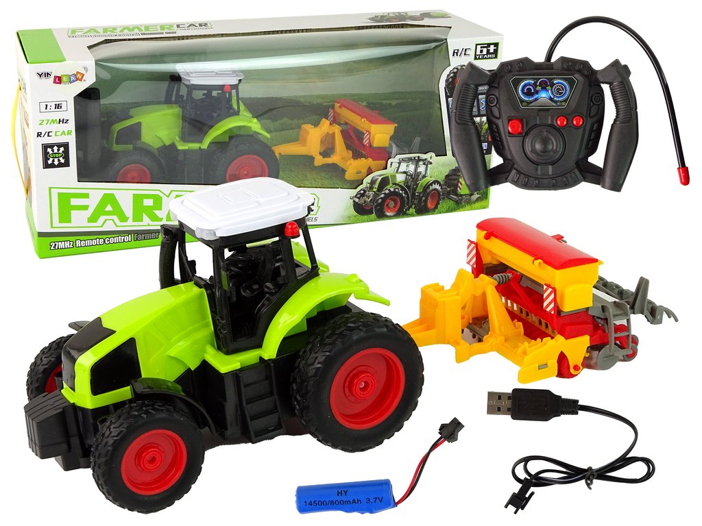 Tento traktor funguje na akumulátoru 14500/800mAh 3.7V (součástí balení spolu s nabíječkou). Ovládání probíhá pomocí ovladače o rozměrech 12 cm x 27 cm x 5 cm (baterie do ovladače nejsou součástí balení). Model je v měřítku 1:16 a je vhodný pro děti od 6 let.