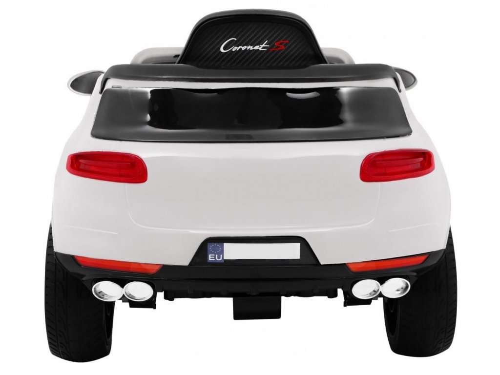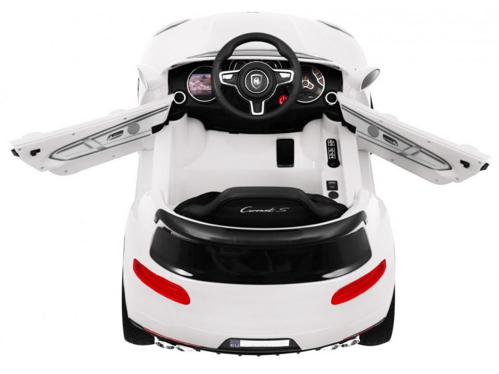 Dětské elektrické autíčko Turbo-S v bílé barvě. Elektrické autíčko je vybaveno svítícími předními a zadními světly. Obsahuje přípojku pro MP3, SD kartu a USB. Pro bezpečnost dítěte je na sedačce umístěn bezpečnostní pas. Chcete-li se vydat na projížďku, stačí se jen pohodlně usadit v elektrickém autíčku, a pak zmáčknout tlačítko START. V sadě se nachází i dálkové ovládání pro rodiče, které využijete, když dítě ještě nezvládá řízení autíčka samo.