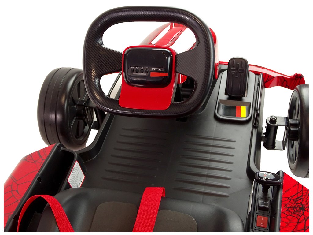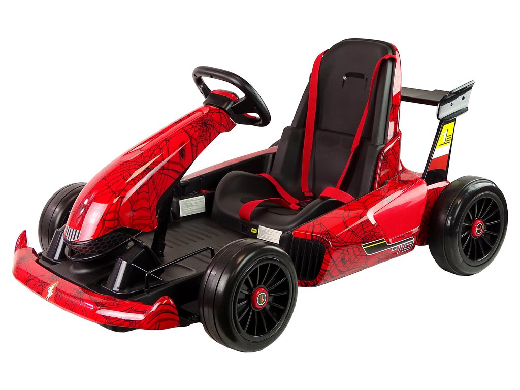 Dětská elektrická motokára Spider s baterií o kapacitě 24V 7Ah a dvěma motory s výkonem 45W má nosnost 65 kg. Motokára je vybavena sportovní tvarovanou sedačku s bezpečnostními pásy. Motokára dosahuje rychlosti až 12,5 km/h. Motokára má nafukovací kola a je možné ji ovládat pomocí dálkového ovladače, který pracuje na frekvenci 2,4 GHz.