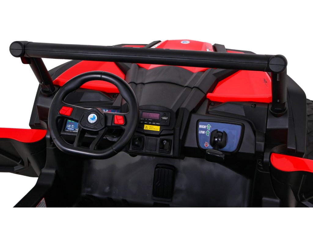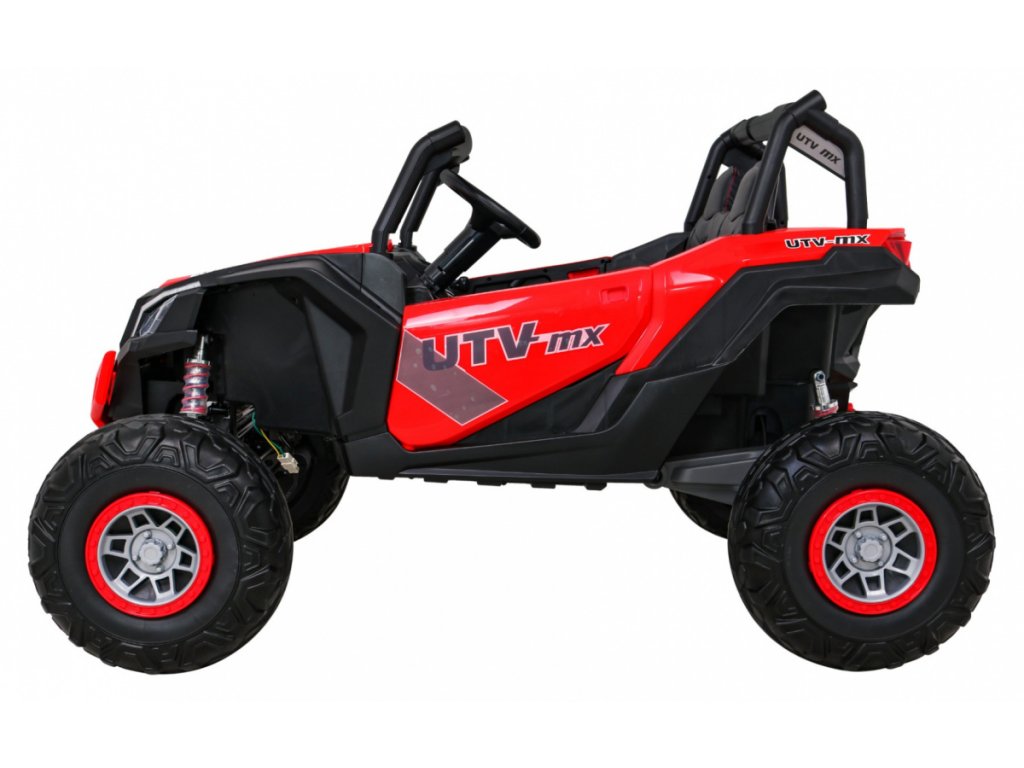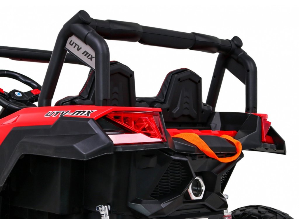Dětská elektrická Buggy UTV-MX se čtyřmi výkonnými elektrickými motory 60W a baterií 24V 7Ah. O pohodlnou jízdu se postarají velká pěnová EVA kola, která společně s motory zdolají terén či nezpevněný typ povrchu.