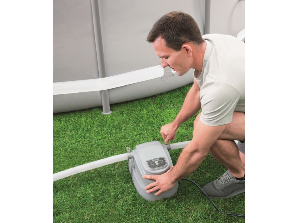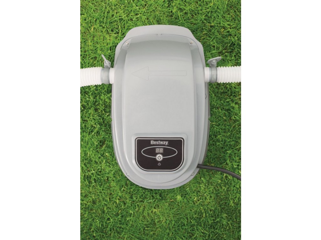 Představujeme Vám elektrický ohřívač velice snadno a efektivně ohřeje vodu ve vašem nadzemním bazénu. Elektrický ohřívač prodlouží koupací sezónu a zajistí pro vás větší pohodlí. Za jednu hodinu ohřeje vodu v bazénu o 0,5 – 1,5 oC, záleží na velikosti bazénu.