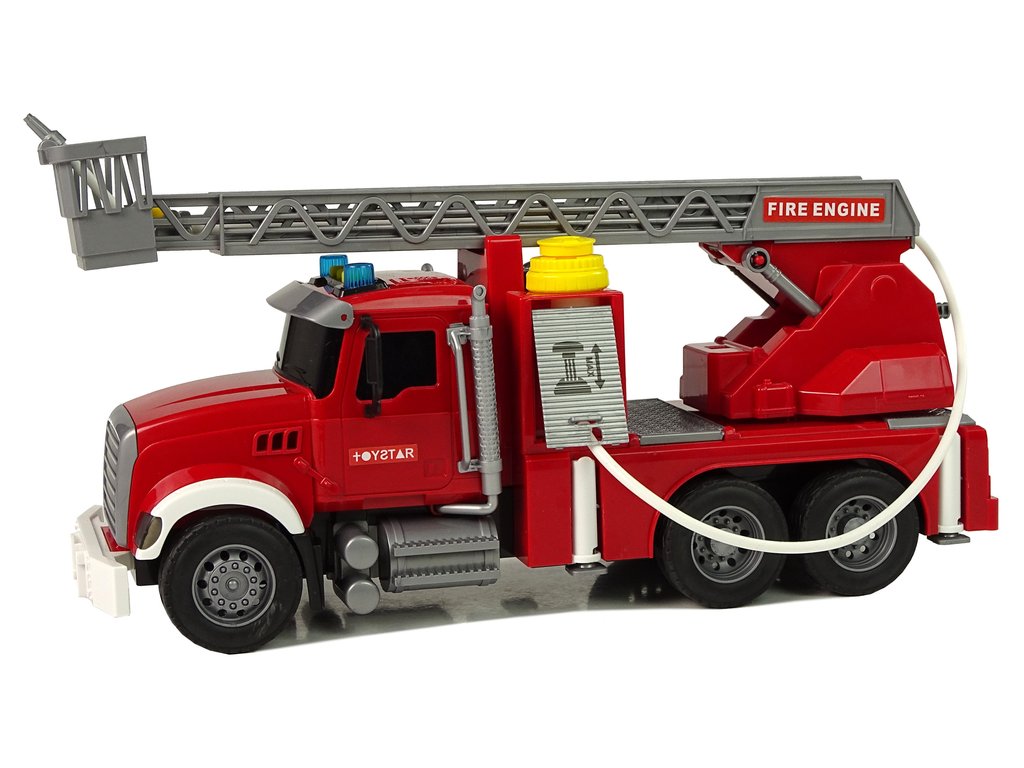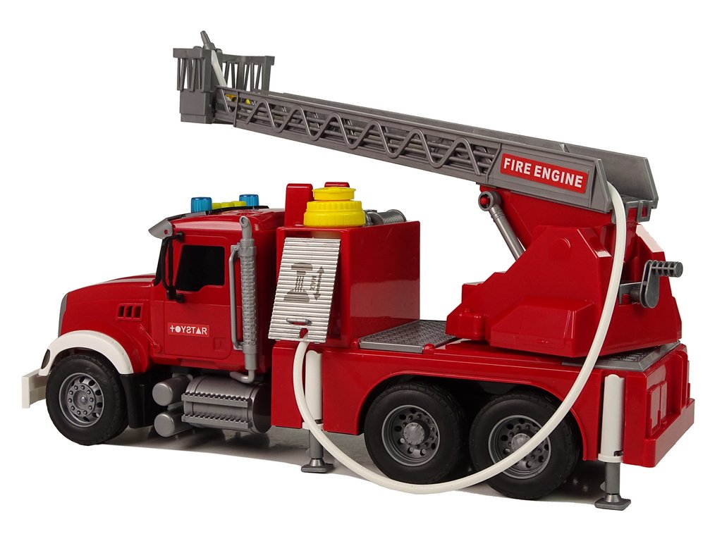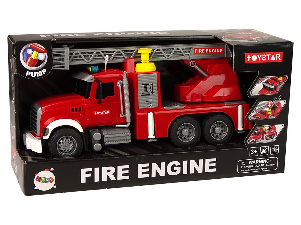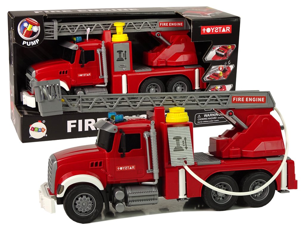 Na vrchní části kabiny vozidla je žlutý otvor, kterým můžeš jednoduše dolít vodu dovnitř. Stačí pár poklepů a uvidíš, jak voda proudí hadicí namontovanou na speciálním místě. Tvůj malý pomocník je připraven na akci! Stisknutím tlačítka na vrcholu nádrže uvidíme, jak voda začne stříkat! Tím můžeš uhasit i ty nejmenší ohně. Přidané funkce, jako zvukové a světelné efekty, dodají celé hře autentičnost a dojem reality.