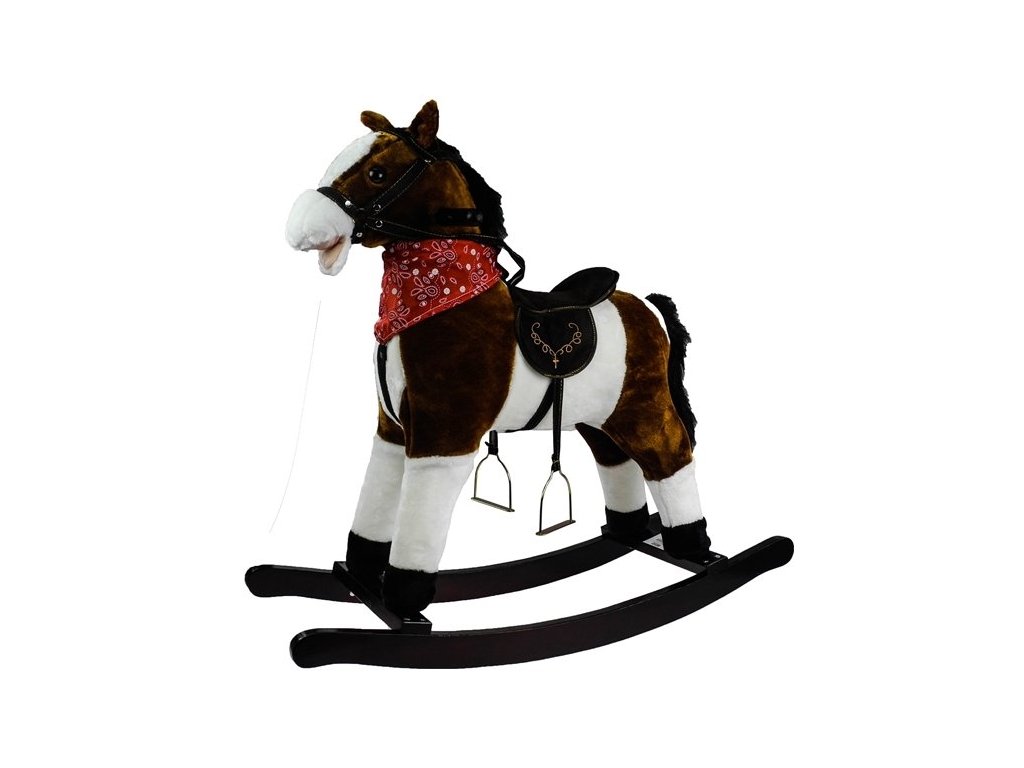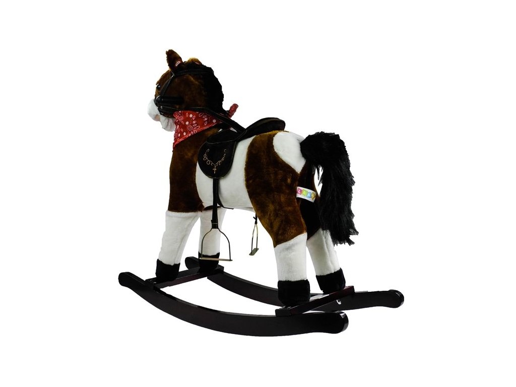 Houpací koník je vyrobený z měkkého plyše, má dřevěné rukojeti a dřevěný podstavec. Vydává zvuky cvalu a řehtání. Skvělá hračka pro všechny malé kovboje. Má tmavě hnědou barvu, kterou doplňují bílé části.