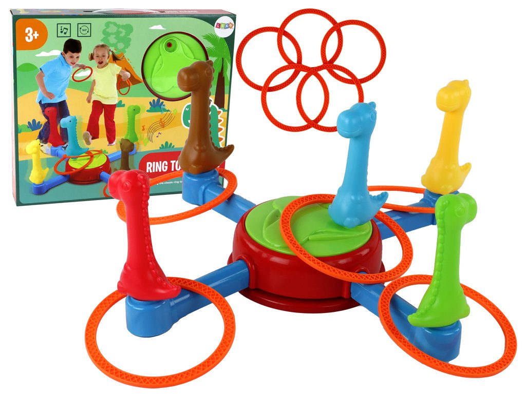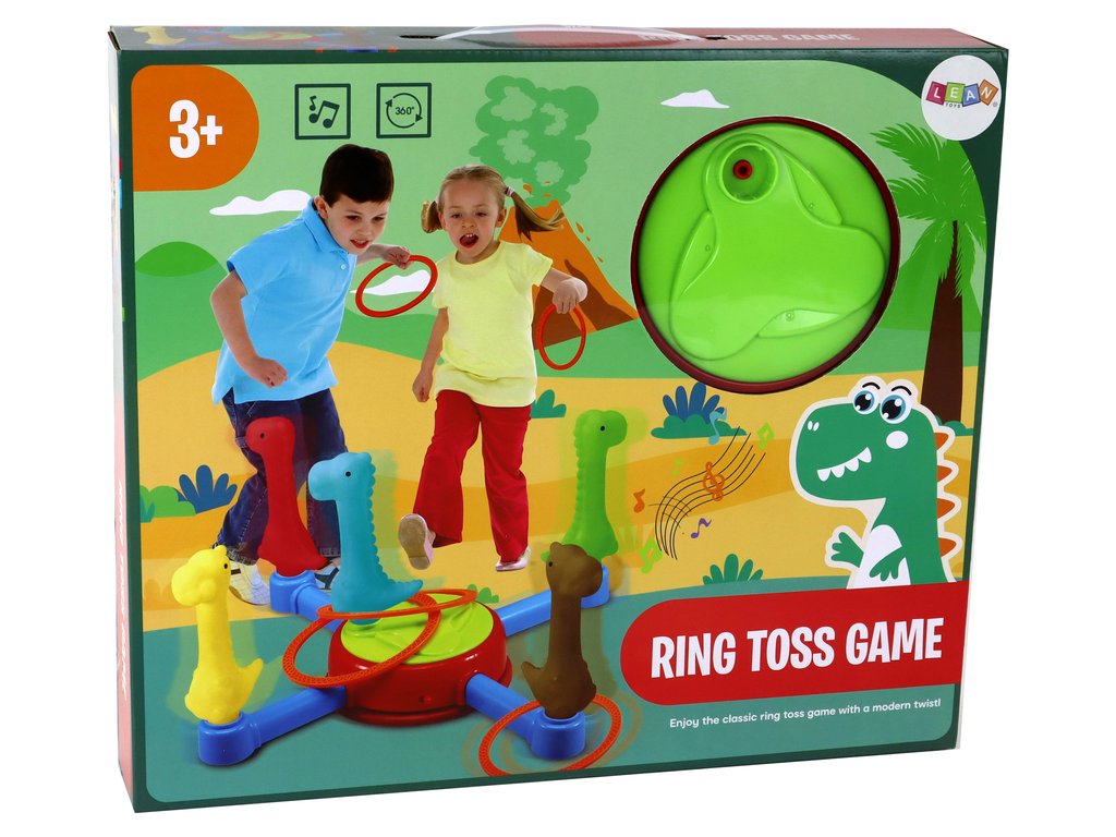 Součástí balení je pět kroužků. Úkolem dítěte je pokusit se trefit středem každého kroužku na vybrané dinosaury otáčející se na kolotoči. To vyžaduje přesnost a koordinační schopnosti.