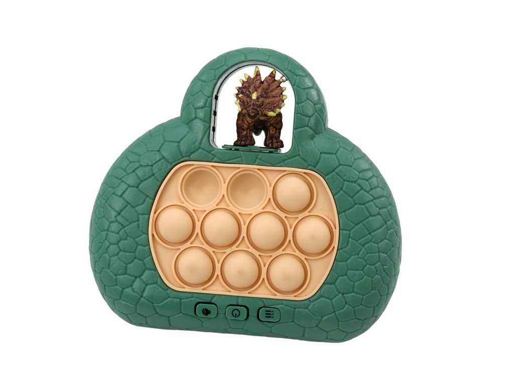 Pop It je elektronická konzole, která podporuje rozvoj paměťových a koncentračních dovedností pomocí zábavné hry, ve které děti sledují a opakují sekvence světýlek mačkáním správných "bublinek." Čtyři herní režimy zajišťují pestrost, zatímco světelné a zvukové efekty hru ještě více oživují. Pop It s dinosaurem nabízí ideální kombinaci učení a zábavy, která rozvíjí koncentraci, koordinaci a paměť zábavným a poutavým způsobem.