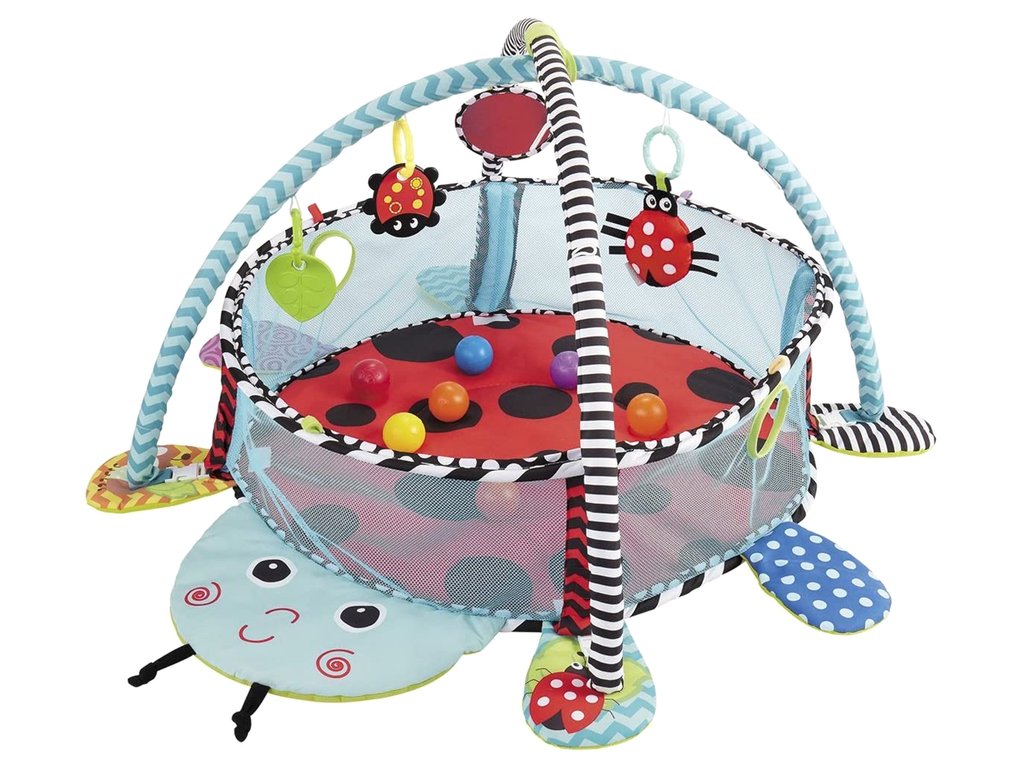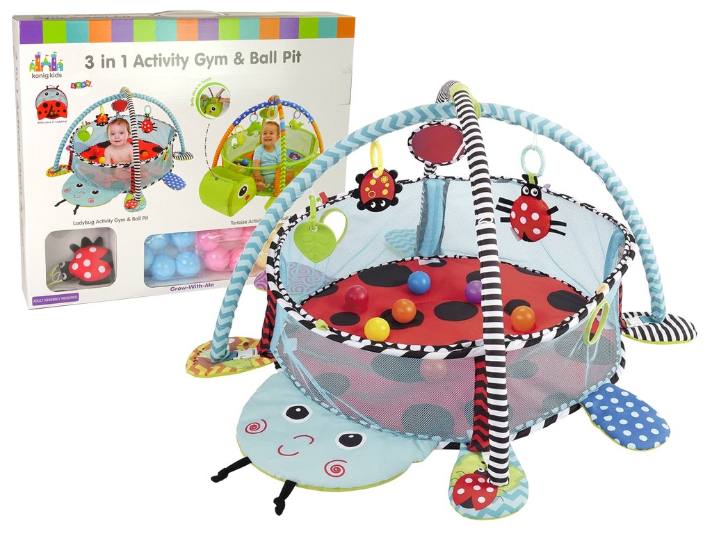 Hrací podložka pro miminko je vybavena odnímatelnými hrazdičkami, na které lze zavěsit hračky. Plyšové hračky lze odejmout a použít jako chrastítko. Hrací deka je vyrobena z velmi příjemného materiálu na dotek. Hračka pomáhá rozvíjet představivost a motorické schopnosti.