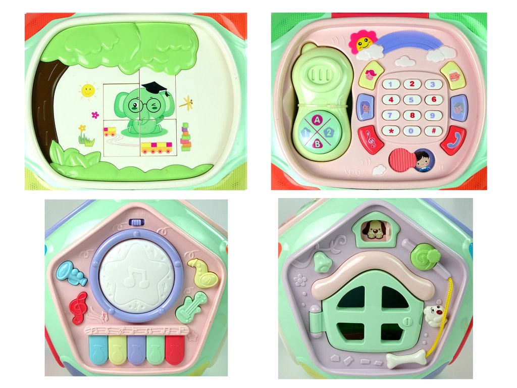 Interaktivní domeček povzbudí každé dítě k zábavě. Každá stěna multifunkčního sedmihranu má jinou barvu a funkce.