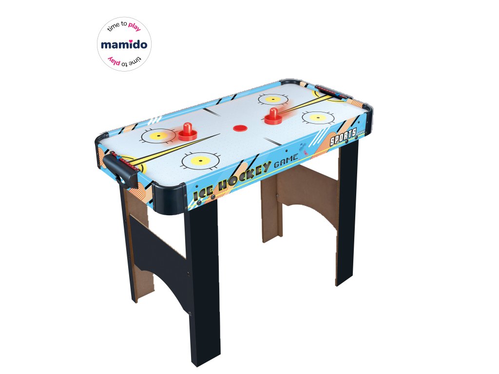 Stůl nabízí stabilní konstrukci, pohodlnou výšku pro děti i mladší hráče a hrací plochu s moderním sportovním potiskem. Díky ventilaci je puk neustále v pohybu a hráči mohou předvádět rychlé reakce i precizní střely. Na obou stranách se nachází manuální počítadla gólů, takže můžete snadno sledovat skóre. Boční madla usnadňují přenášení a stůl lze používat doma, v herně nebo na společných rodinných akcích.